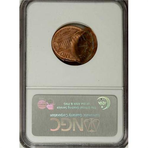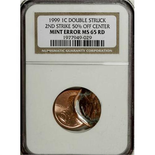 <B>1999 1C Lincoln Cent--Double Struck, 2nd Strike 50% Off Center--MS65 Red NGC.</B></I> <BR><BR><B>Coin Engraver:</B> Victor D. Brenner<BR><BR><b>Shipping:</b> Coins & Currency (<a target="_blank" href="http://www.heritageauctions.com/common/shipping.php">view shipping information</a>)