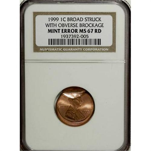 <B>1999 1C Lincoln Cent--Broadstruck with Obverse Brockage--MS67 Red NGC.</B></I> <BR><BR><B>Coin Engraver:</B> Victor D. Brenner<BR><BR><b>Shipping:</b> Coins & Currency (<a target="_blank" href="http://www.heritageauctions.com/common/shipping.php">view shipping information</a>)