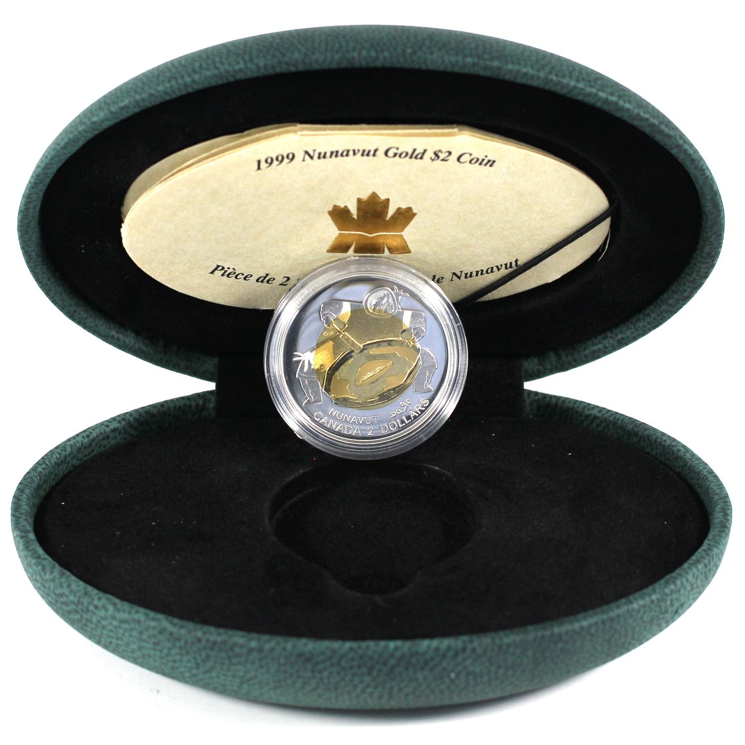 1999 $2 Nunavut Commemorative Fine Silver Coin with 22KT Gold Centre.