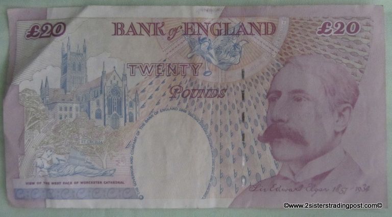 Back: Sir Edward Elgar and view of the west face of Worcester Cathedral