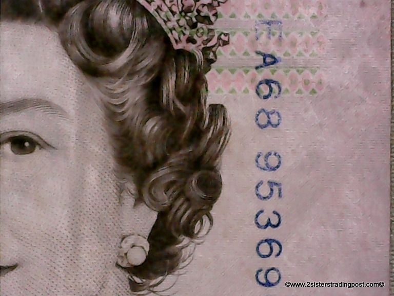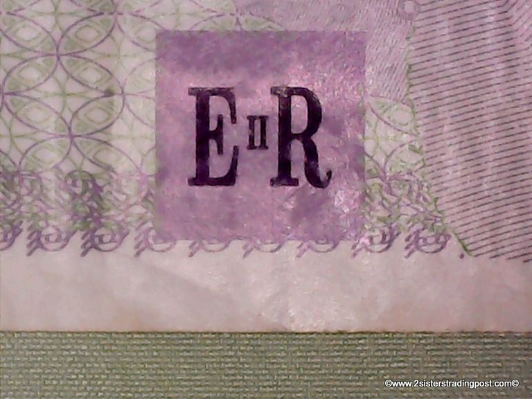Front: Elizabeth II of the United Kingdom in full view facing left and as a watermark, hidden, facing right