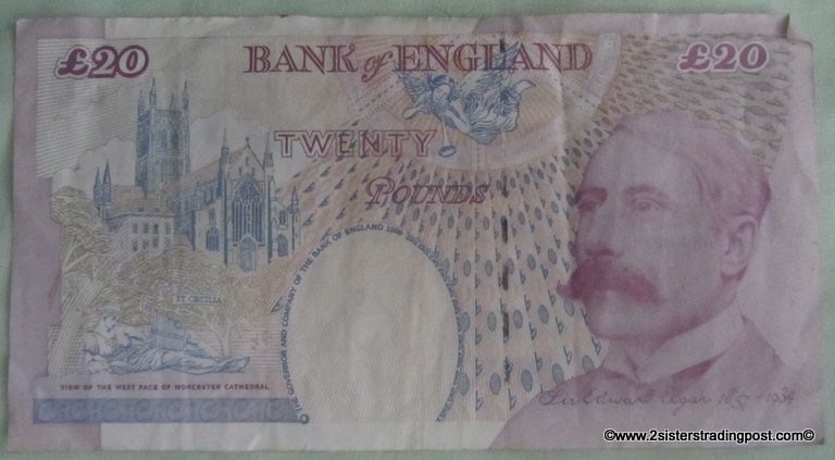 Back: Sir Edward Elgar and view of the west face of Worcester Cathedral