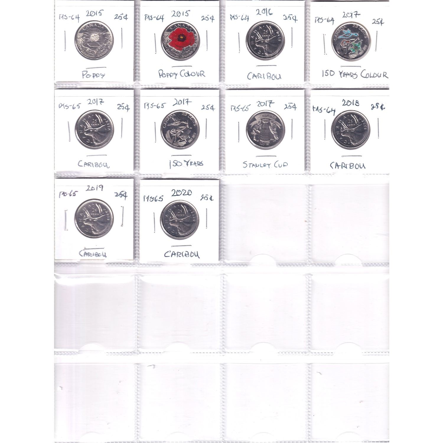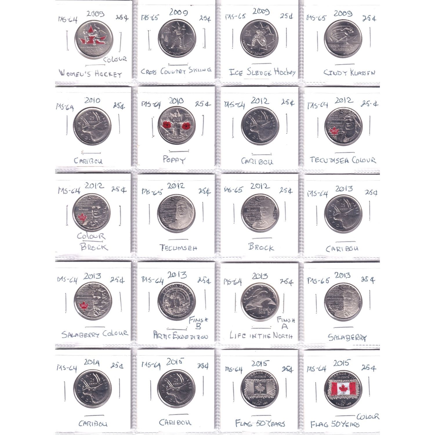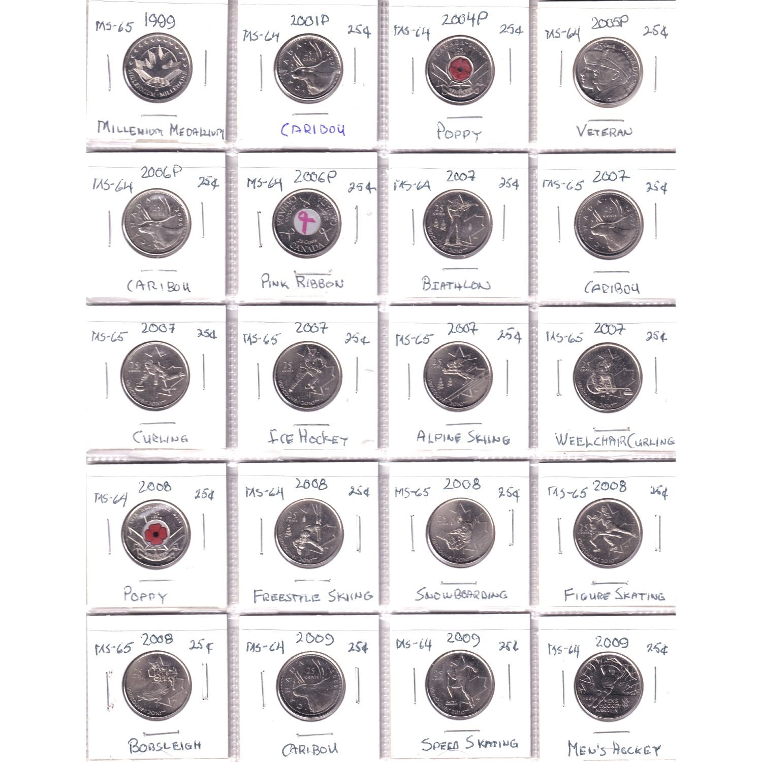 1999-2000 Canada Commemorative 25-cent coins including 1999 millennium medallion, 2004,2008, 2010 & 2015 Poppy.  50pcs