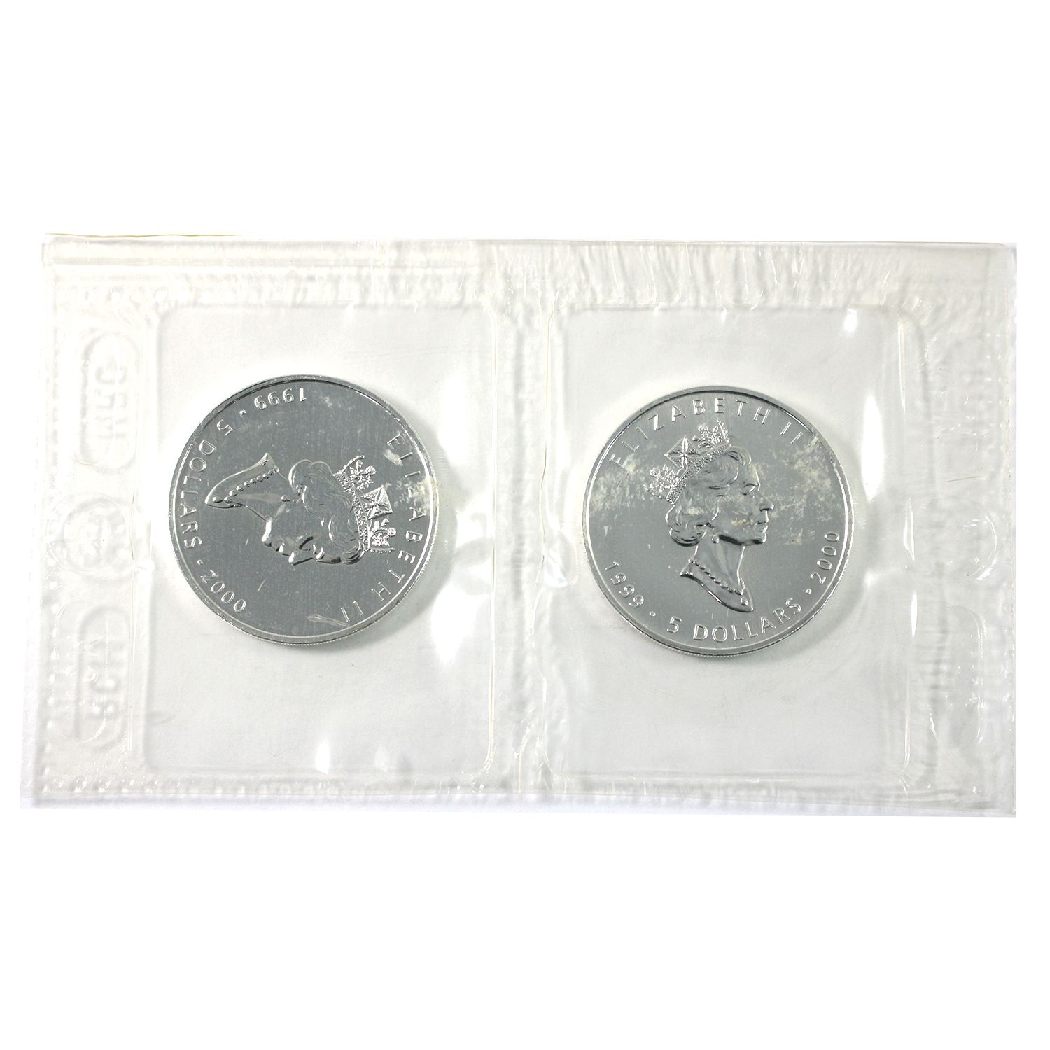1999-2000 Canada Fireworks Privy $5 1oz .9999 SML. Mildly scratched w/ toning spots. 2pcs. (Tax Exempt)