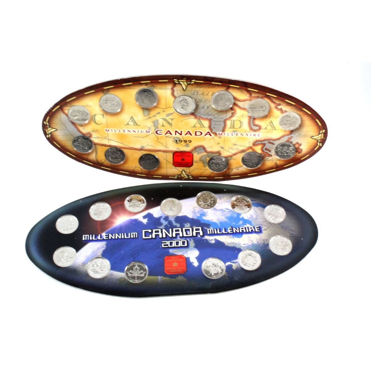 1999 & 2000 Canada Millennium Oval 13-coin 25-cent Boards. The spot for the token is filled with a 25-cent. Buyers Premium will be added on all items as per our terms of sale. We accept Paypal, Credit Card, E-Transfer Payments, Cheque or Money Orders (there is an additional 3% fee for using Paypal or Credit Card). All invoices will be emailed immediately following the auction, please contact us if you would like to pay by credit card or receive a new revised lower total for mailing in payment or sending an e-transfer (3% discount). All Items Are Sold "AS IS", no returns