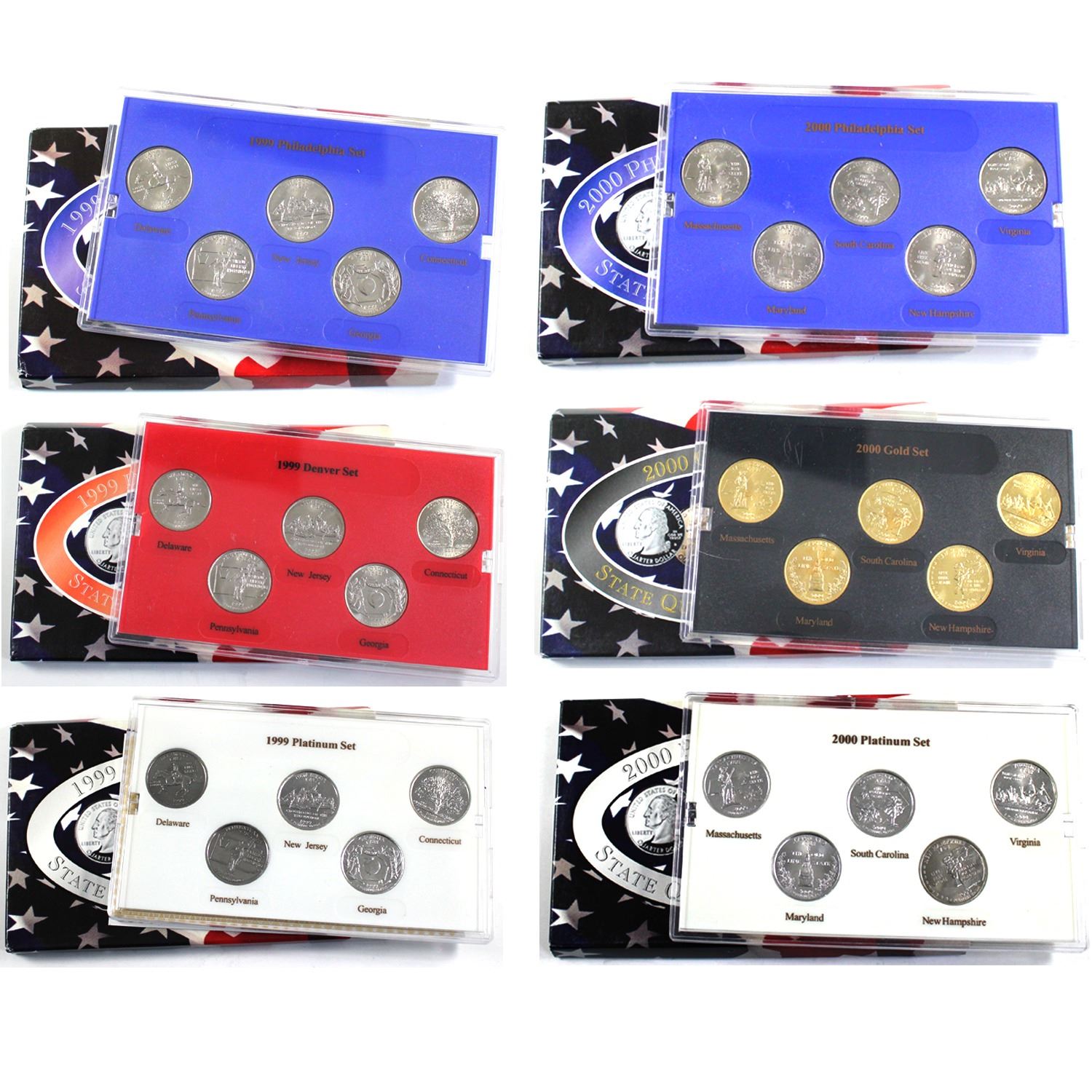 1999 & 2000 State Quarter Collection Philadelphia/Denver Mint Platinum edition collection. Packaging contains various imperfections.3 sets