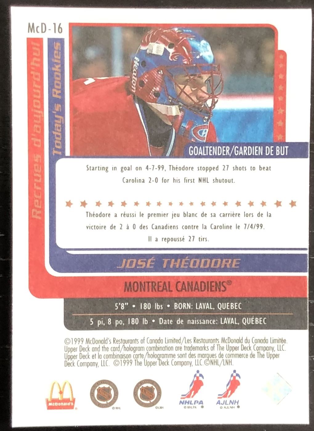 McDonald's card #16 NHL, hockey, UD, rookie, regional