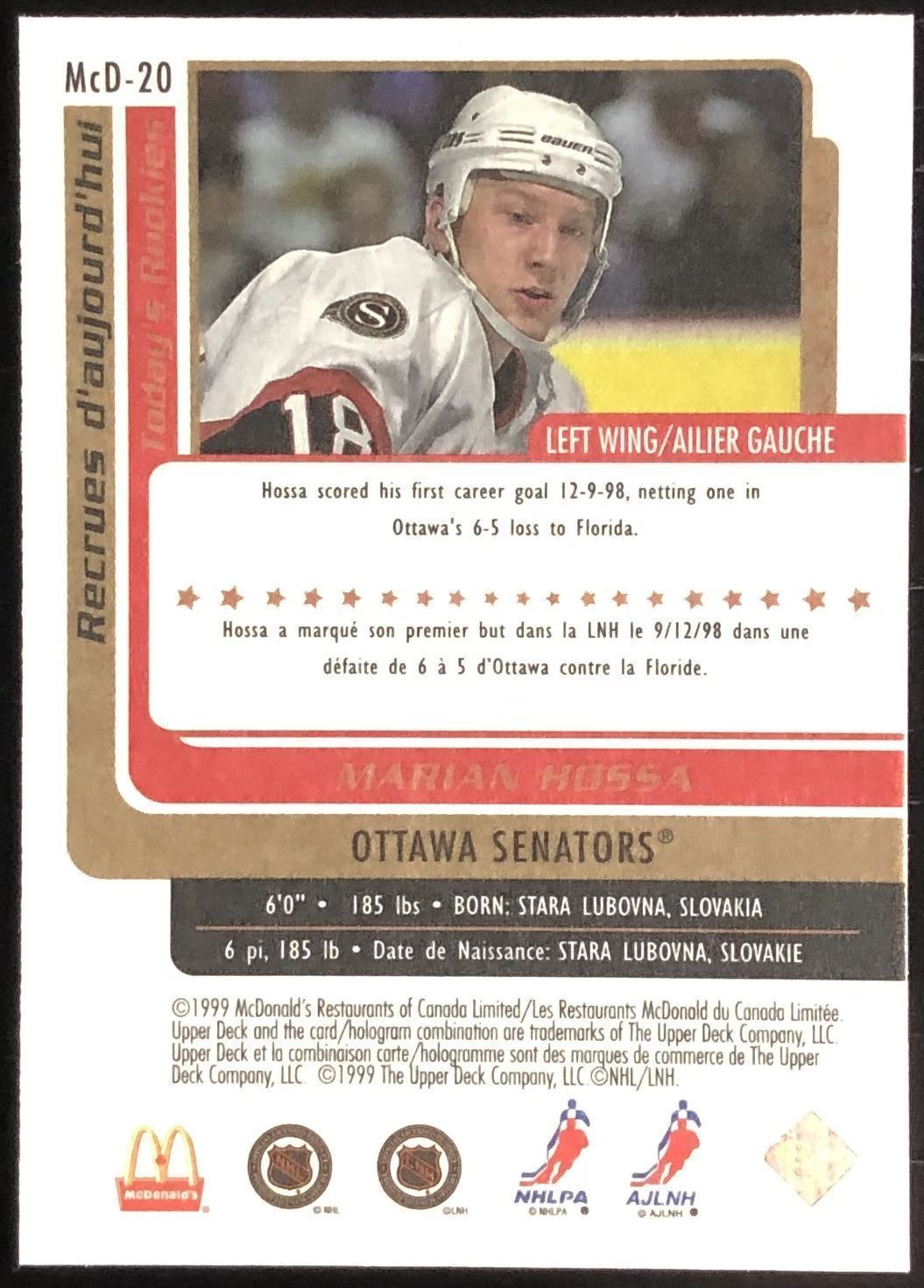 McDonald's card #20 NHL, hockey, hall of fame, regional, rookie