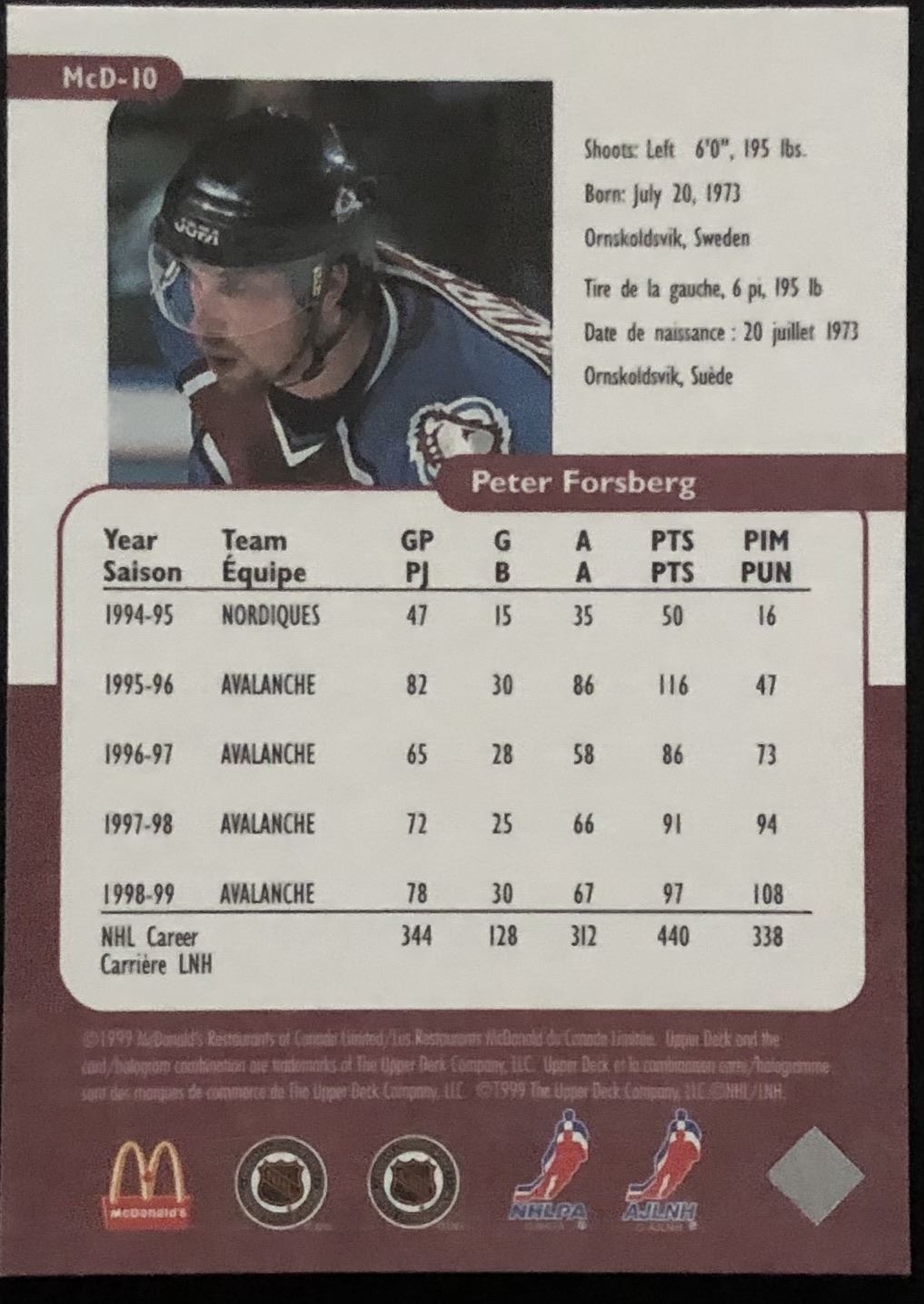 McDonald's card #10 hockey, NHL, UD, regional