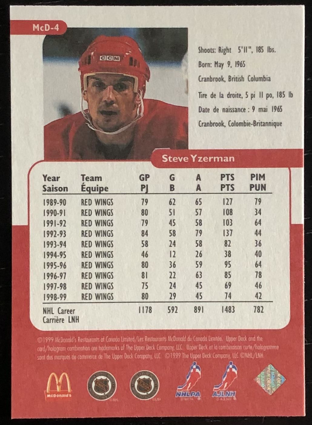 McDonald's card #4 NHL, hockey, hall of fame, regional