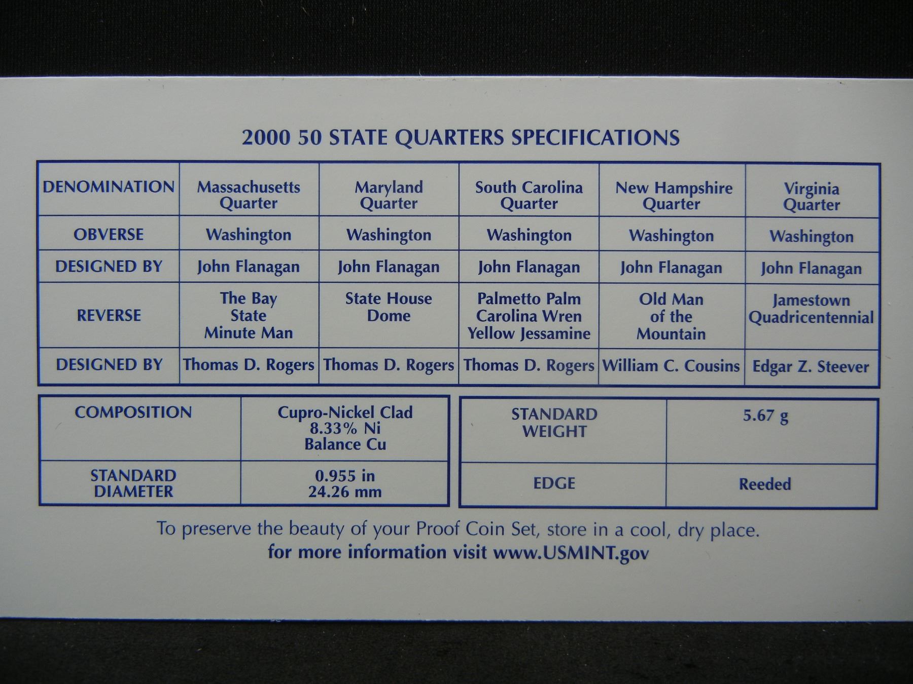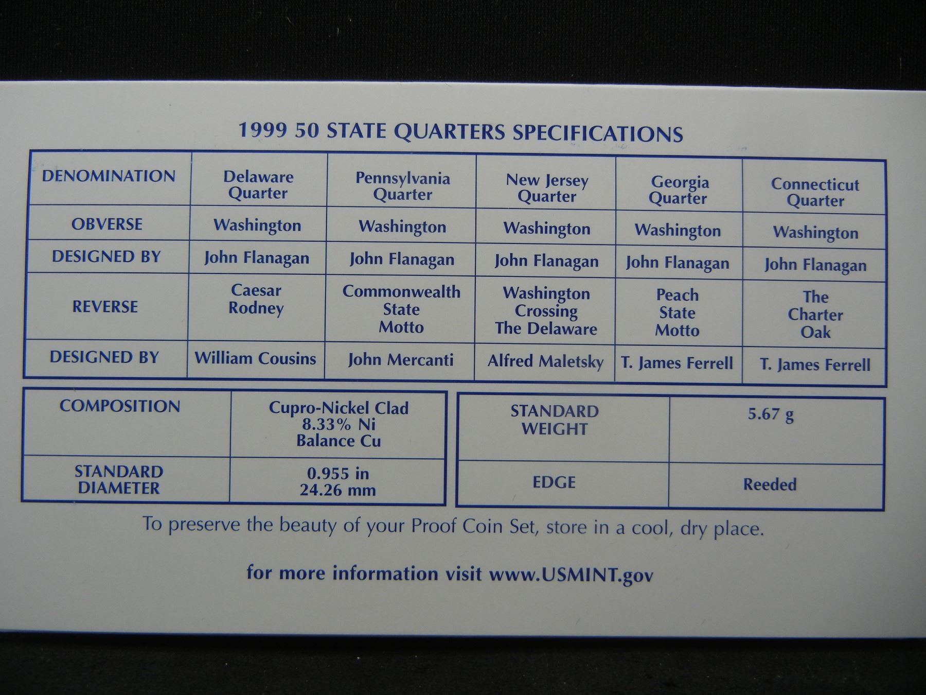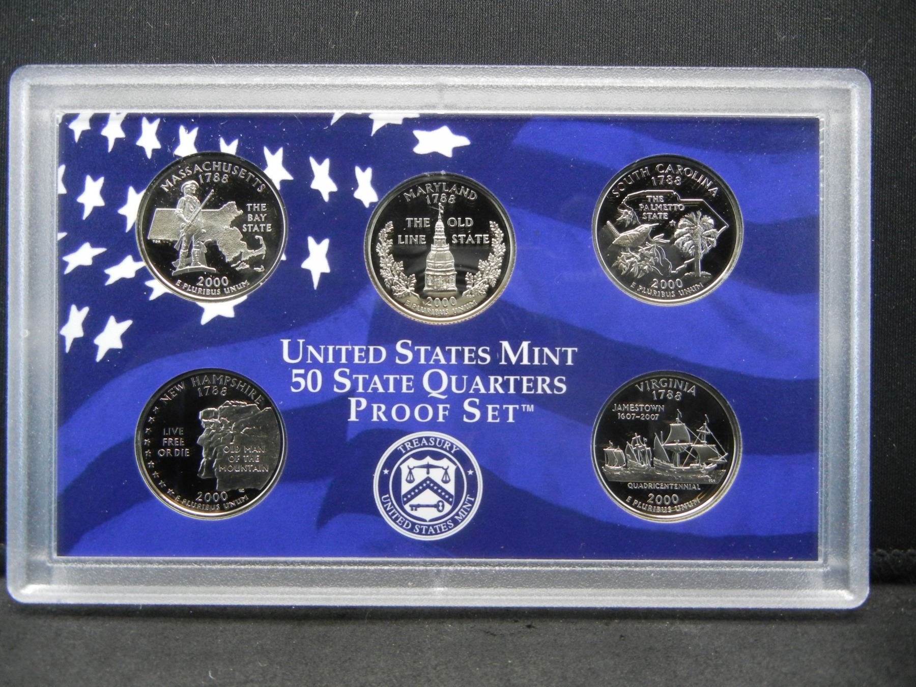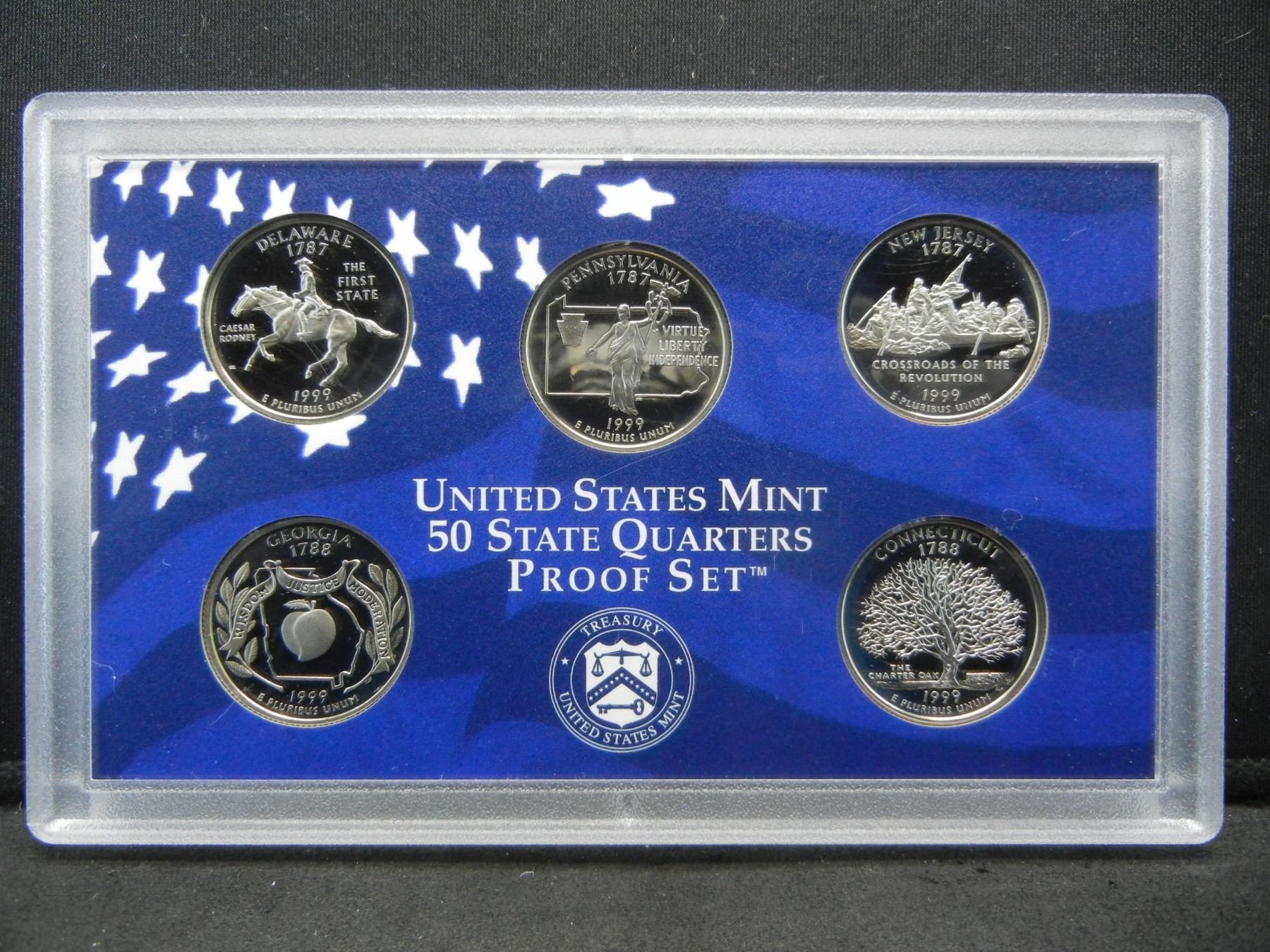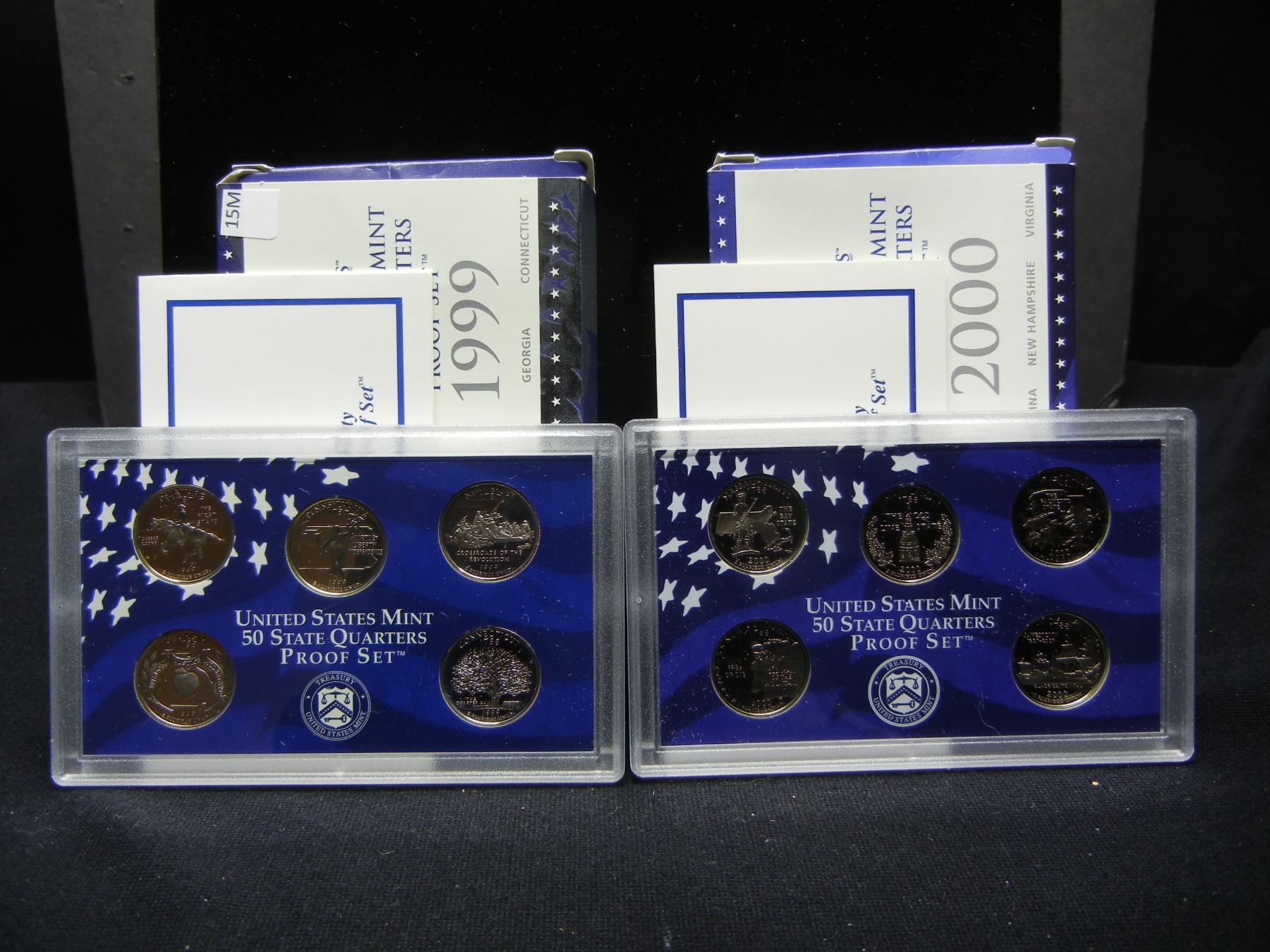 1999 & 2000 United States Mint State Quarter 5-Coin Proof Sets With Gov't Packaging & COA's.