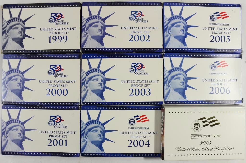1999-2007 US PROOF SETS (WITH BOXES) 9 SETS TOTAL