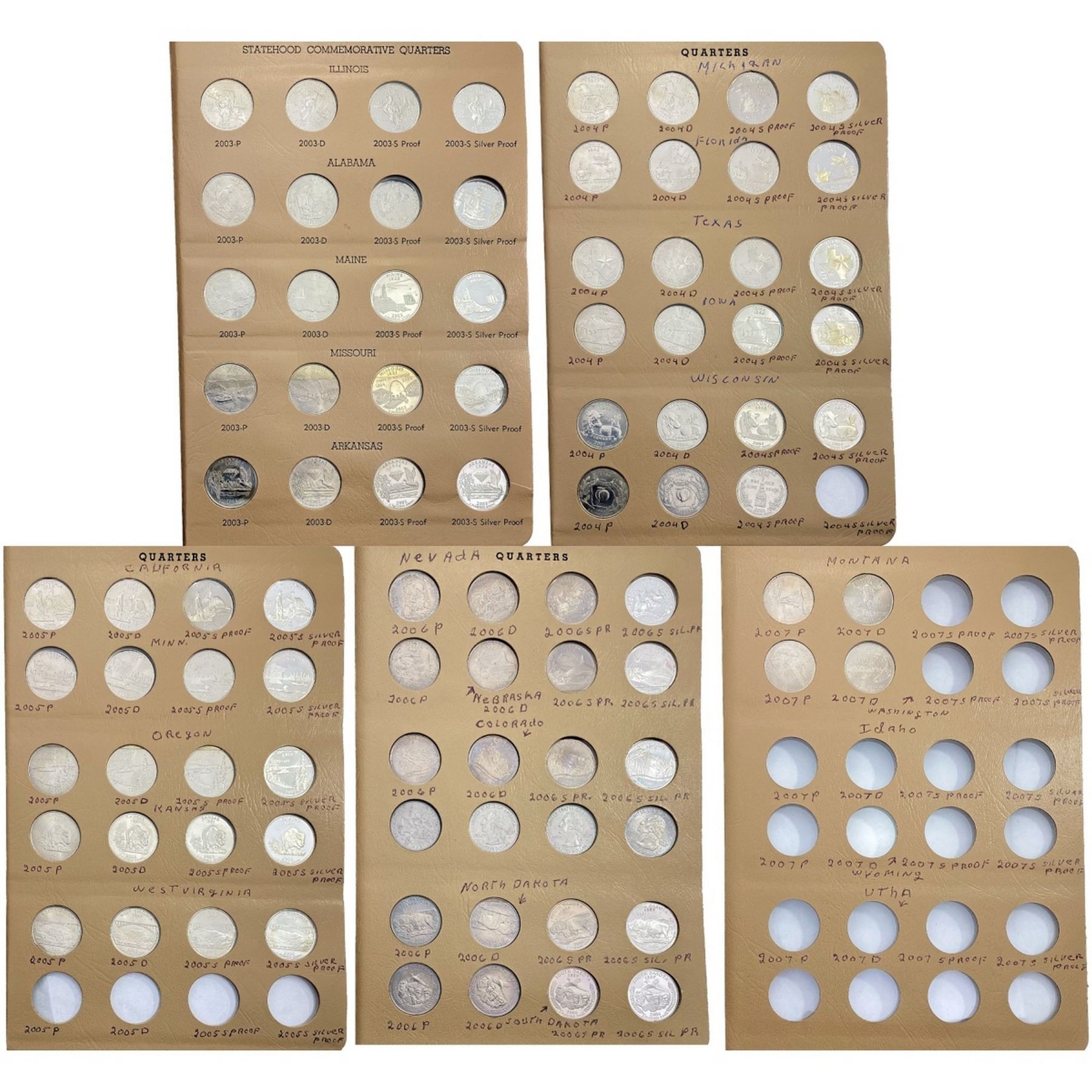 1999-2007 Wash. Statehood Quarters W/Silv. Proofs[71 Coins] GEMBU