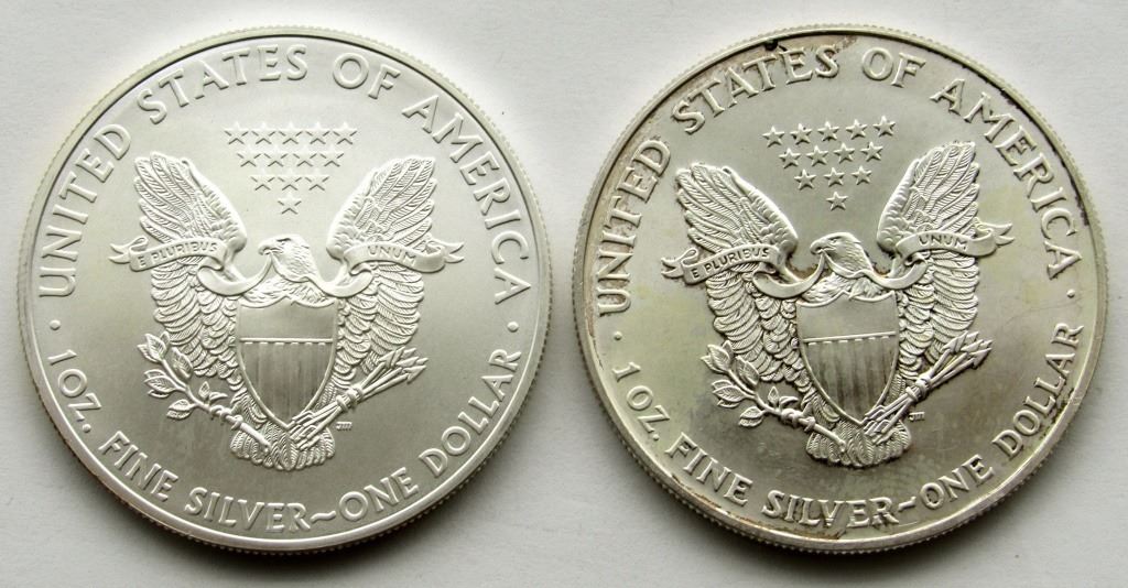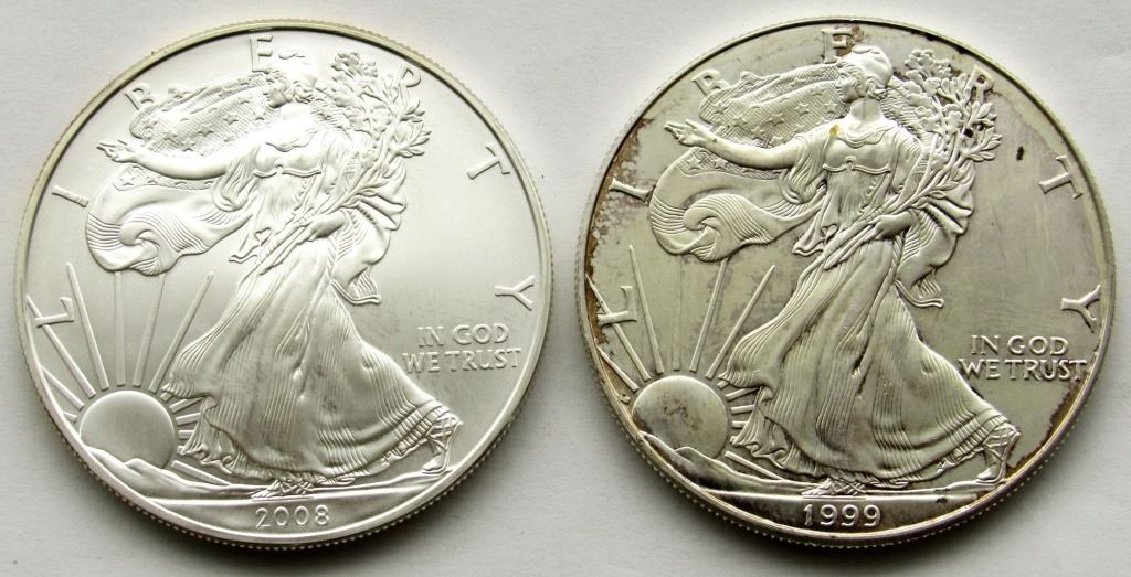 1999 & 2008 .999 SILVER EAGLES U.S. $1 COINS