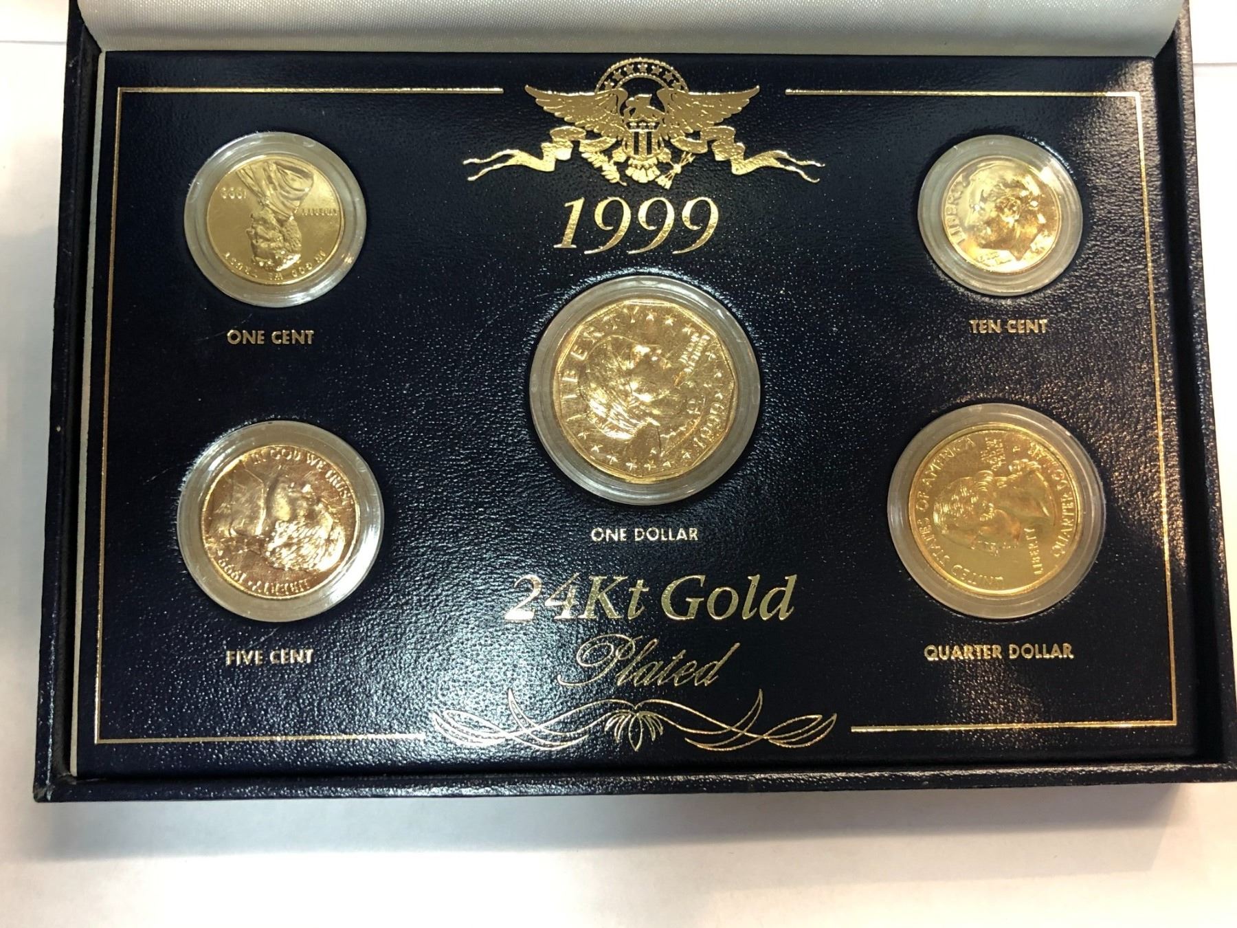 1999 & 2008 US Coin Sets 1999 24K Gold Plated 5 coin set 1999 State Series Quarter Yesr Set 2008 United States Presidential Dollars