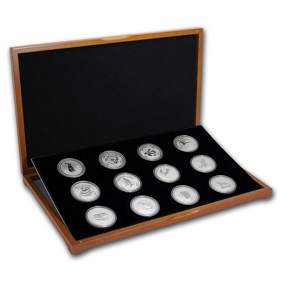 1999-2010 Australia 12-Coin 1 oz Ag Lunar Set BU (SI\, Wood Box)
