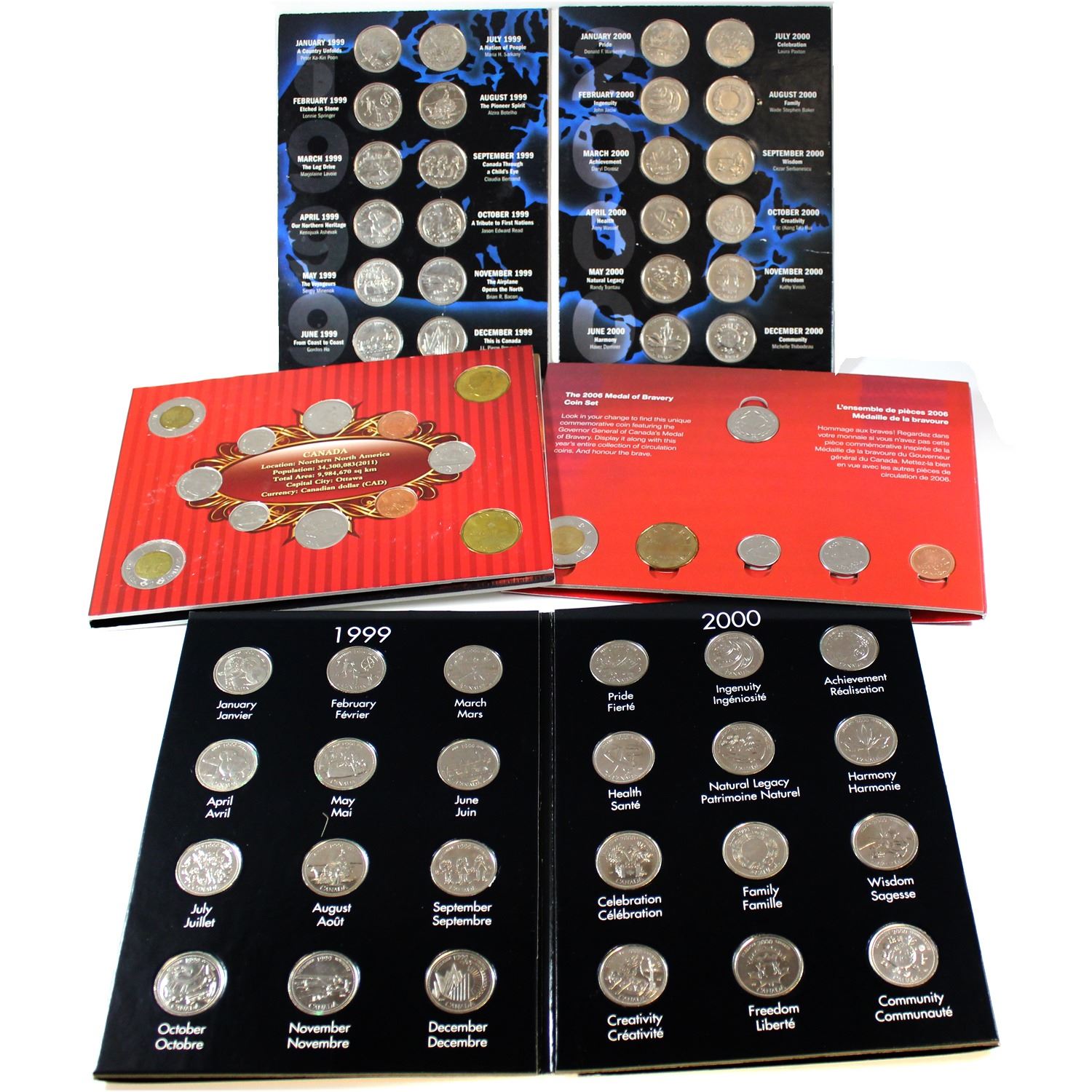 1999-2011 Canada Collector Sets. You will receive 2x 1999-2000 Millennium 25-coin sets (two Different Collector Cards) , 2006 Medal of Bravery 6-coin set, and 2011 12-coin set. 4 sets.