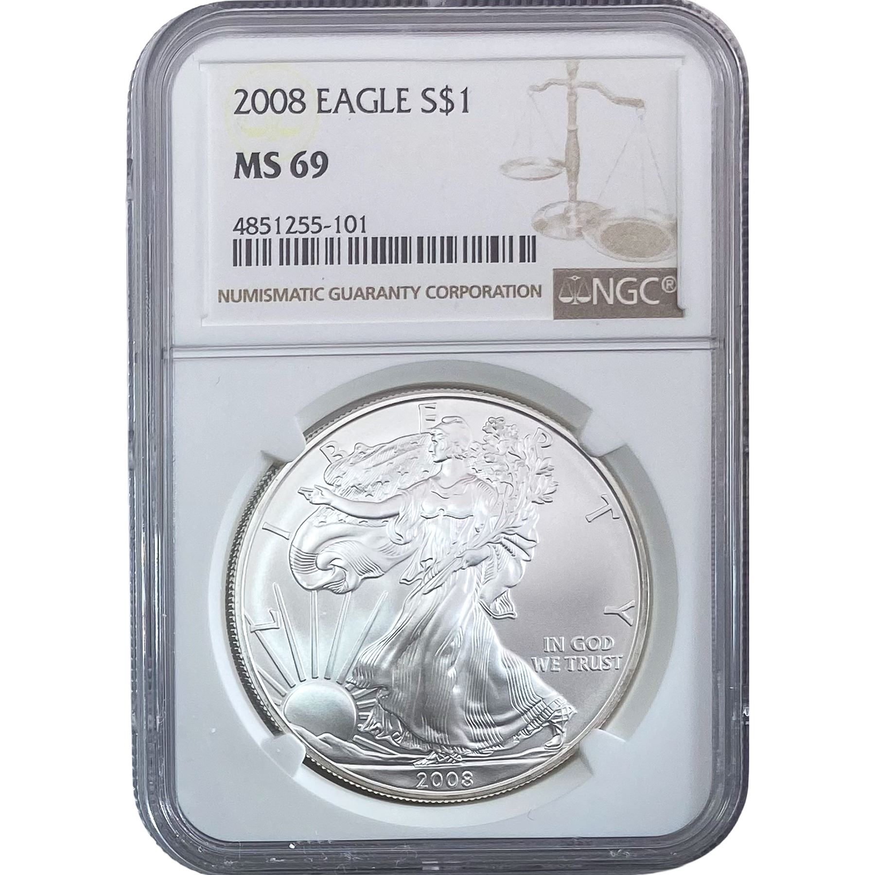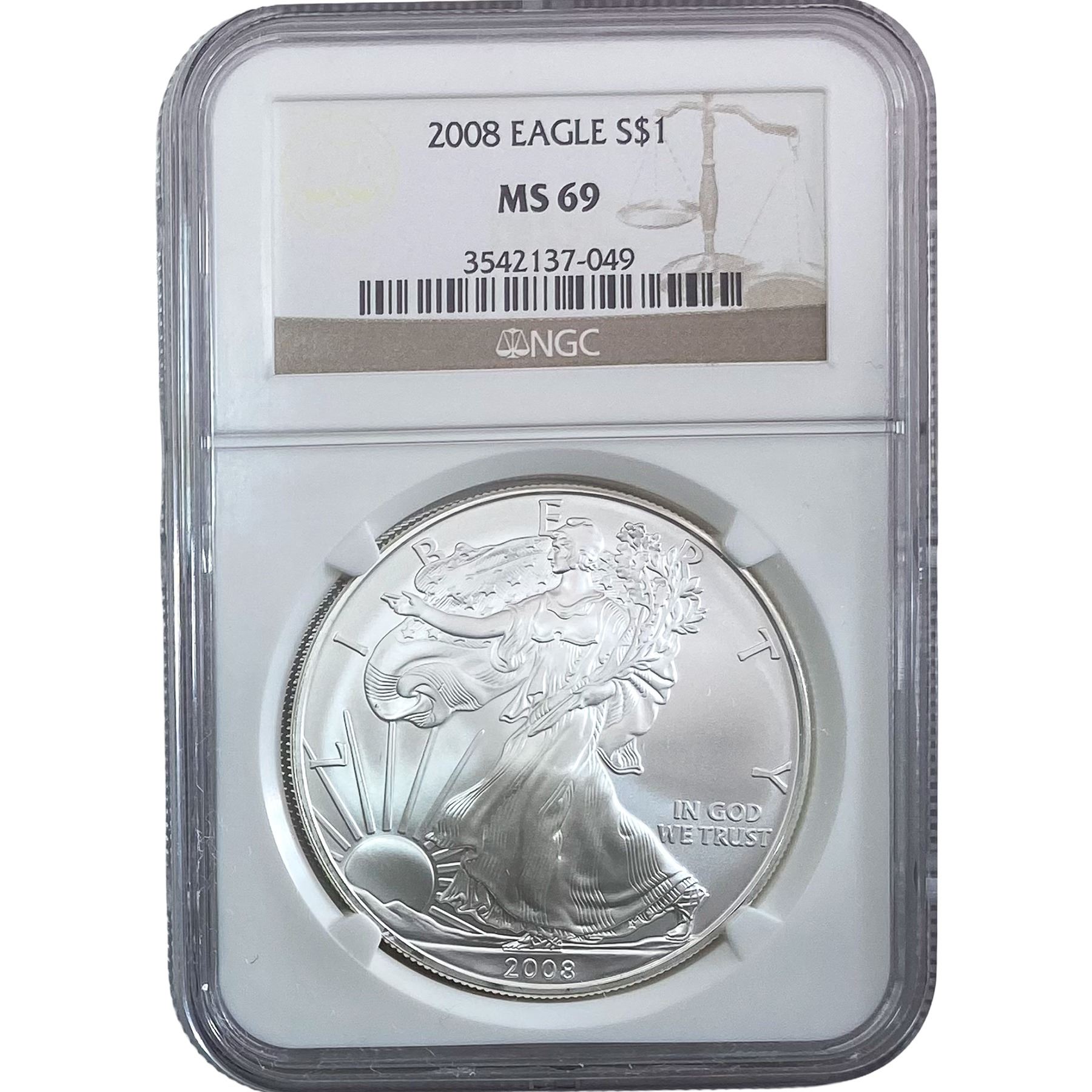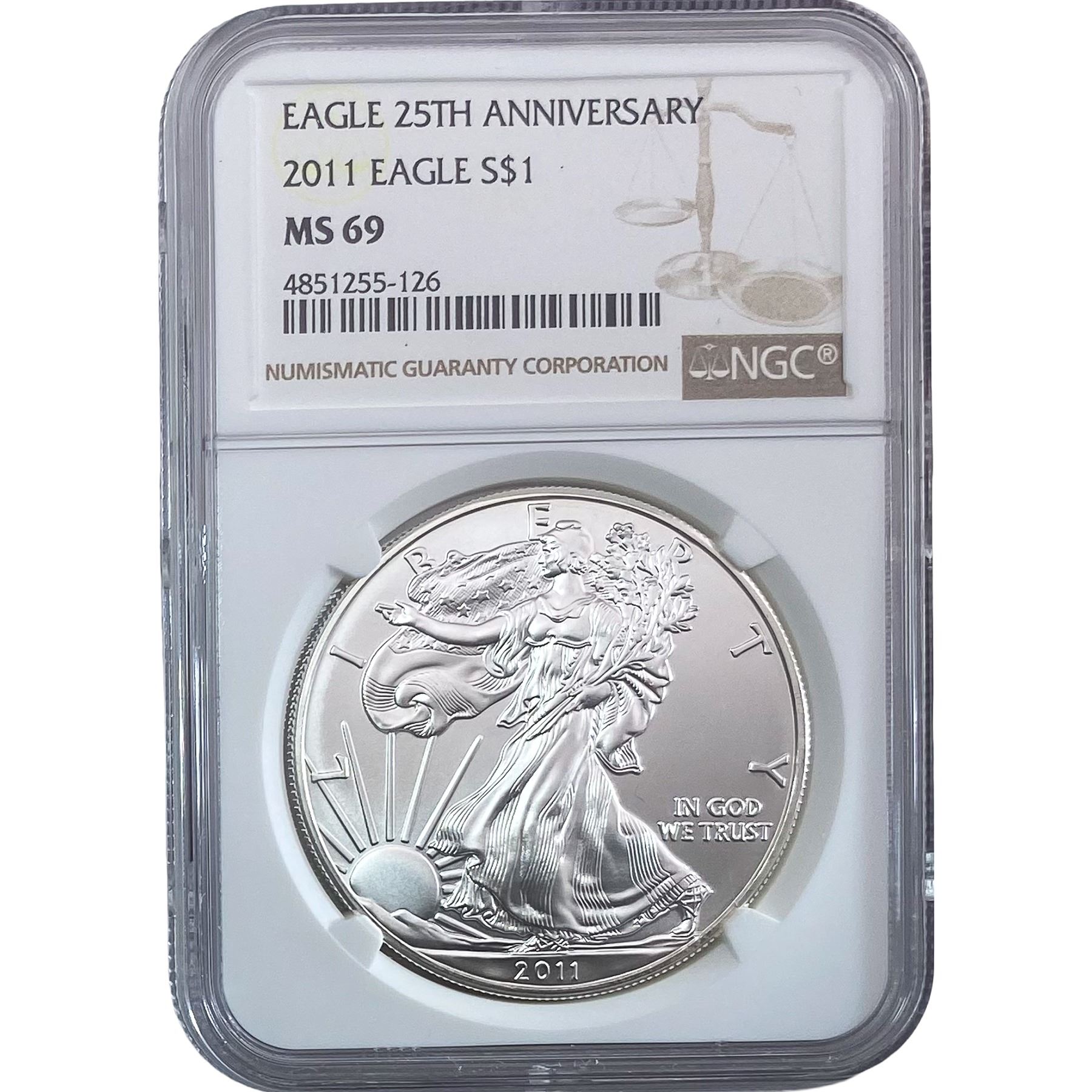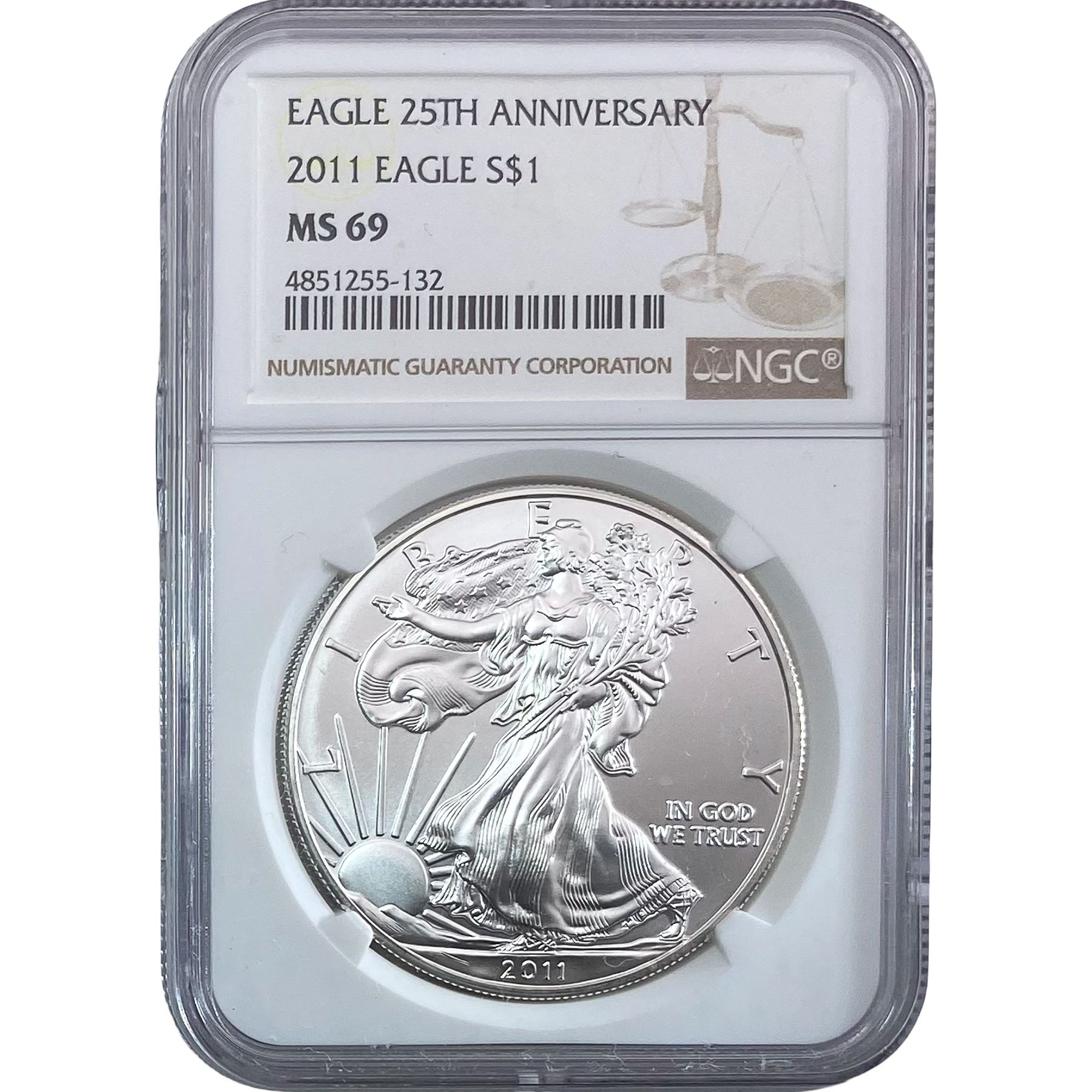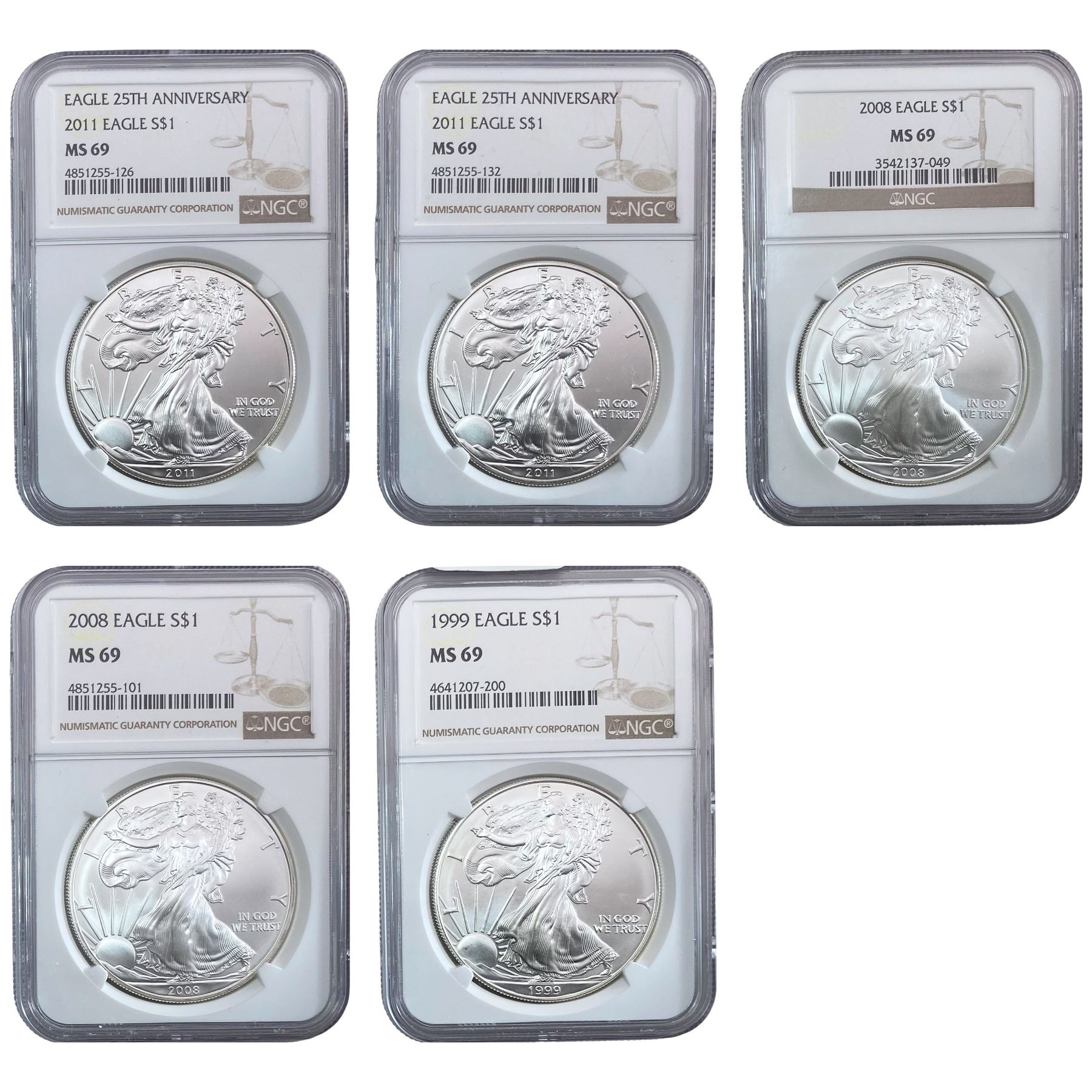 1999-2011 GEM BU Silver Eagle [5 Coins] NGC MS69