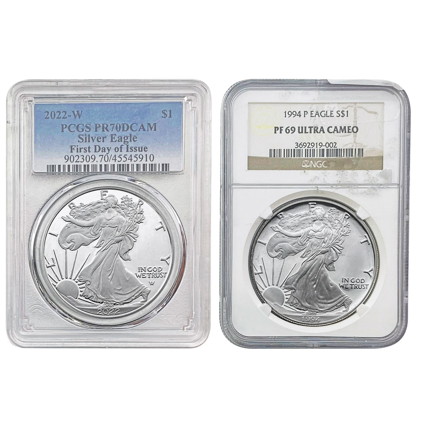 1999, 2022 US Silver Eagle Lot [2 Coins] NGC PF69/70 DCAM