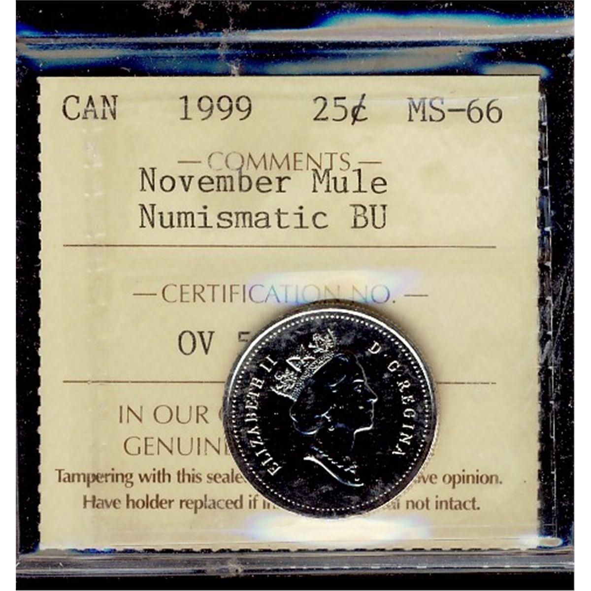 1999 25¢ November Mule ICCS MS66. Rarely seen better. A superior example.