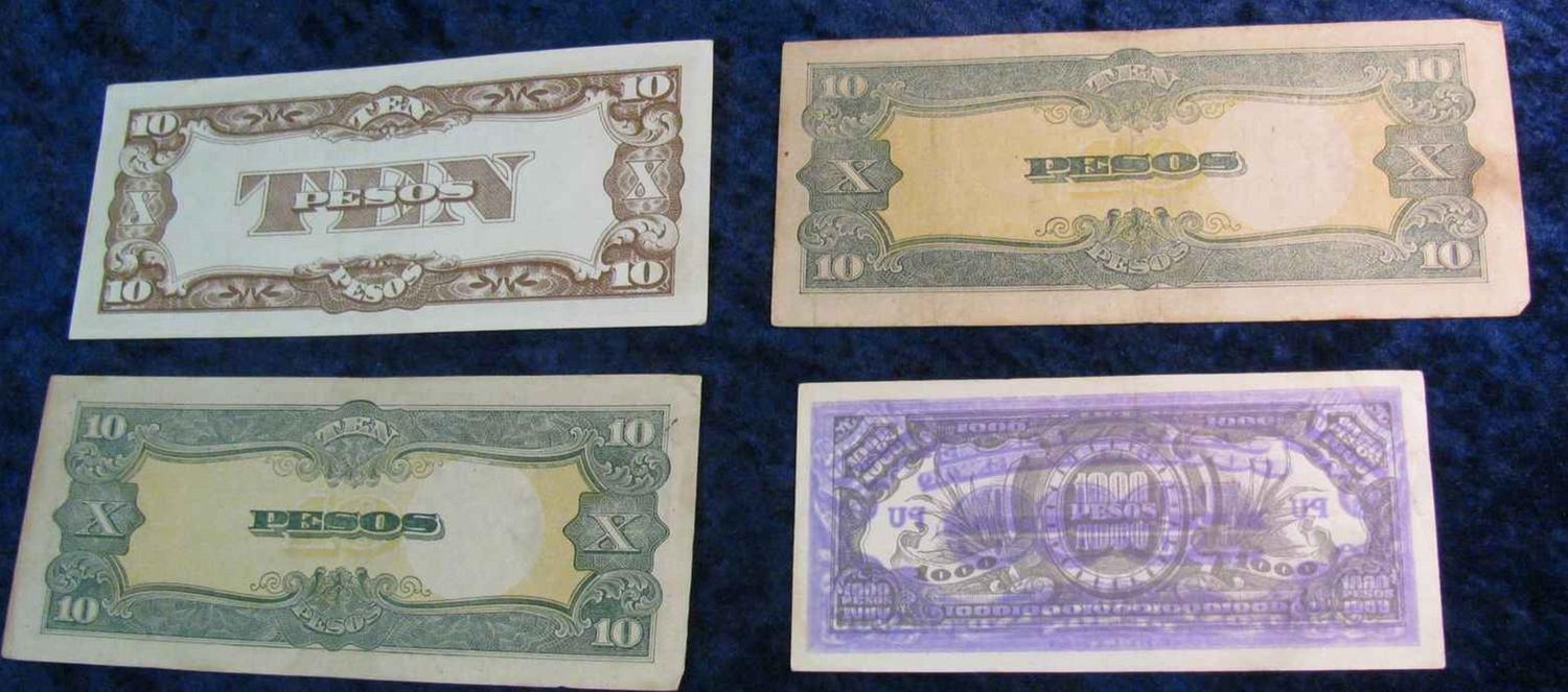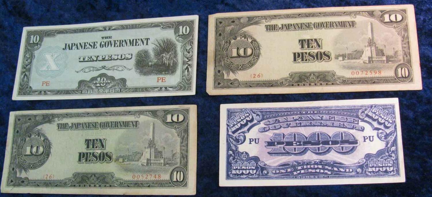1999. (3) 10 & a 1000 Peso Japanese Notes used in WW II Philippines Islands.