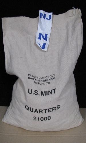 A once-in a lifetime chance to acquire 4,000 UNOPENED UNSEARCHED choice to gem BU NJ Washington Quarters; WE BELIEVE THIS IS A DENVER BAG BUT IT'S YOUR GUESS; many MS65s/higher and many errors/varieties are likely; BID IS PER COIN AT 4,000 TIMES THE BID and is subject to prior sale; individual book values up to $8,500 per coin or more; 1st NJ year $25 bags go for 3x to 10x face on Ebay (search (NJ, jersey) bag)) and you can't find a $1000 bag! Also, the larger bags came right from the mint presses and were't subject to other hangling like smaller Mint bags and rolls - HIGHER GRADES MORE LIKELY! WE JUST DON'T HAVE TIME TO SEARCH THRU THESE AND YOU GAIN AS A RESULT!.