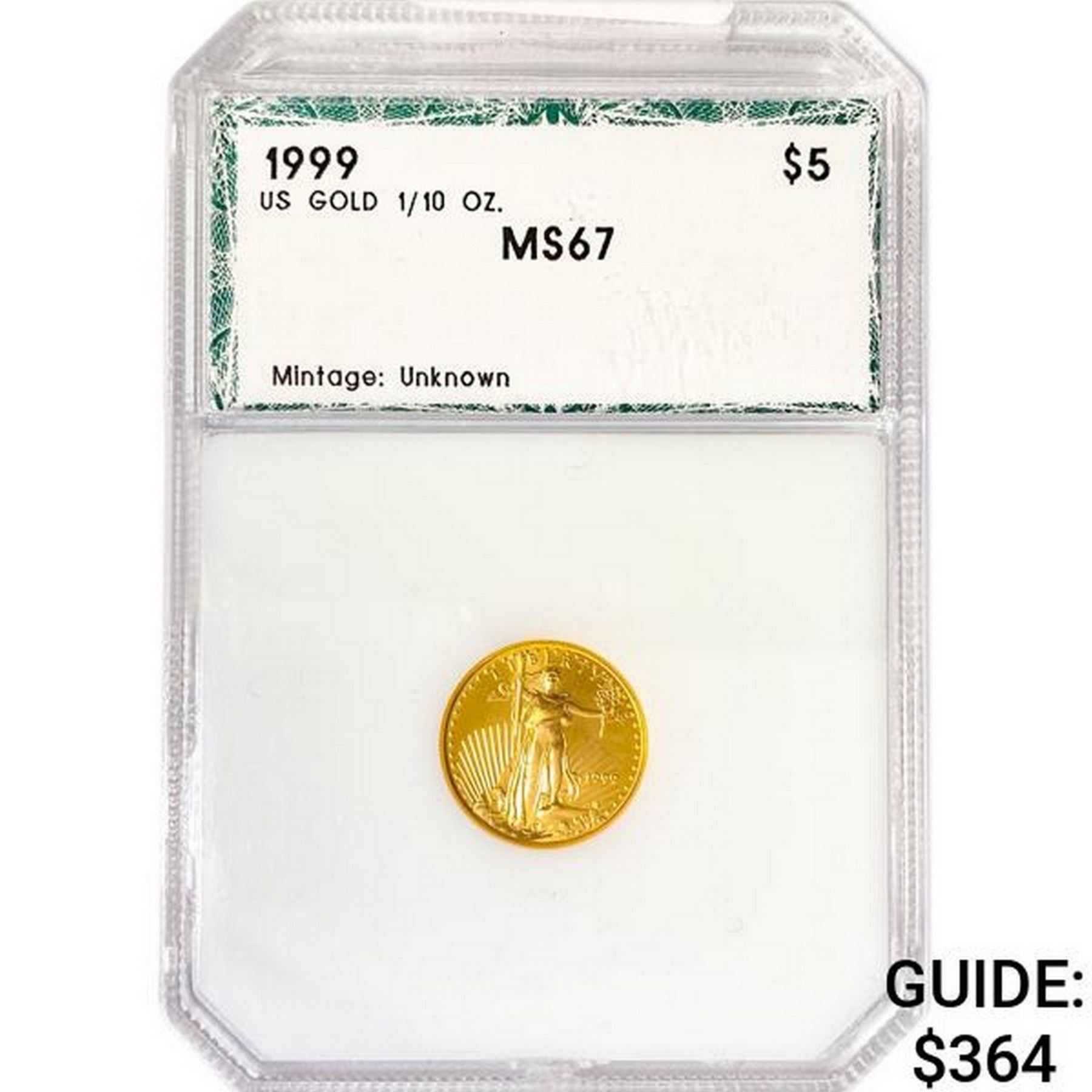 1999 $5 1/10oz American Gold Eagle PCI MS67