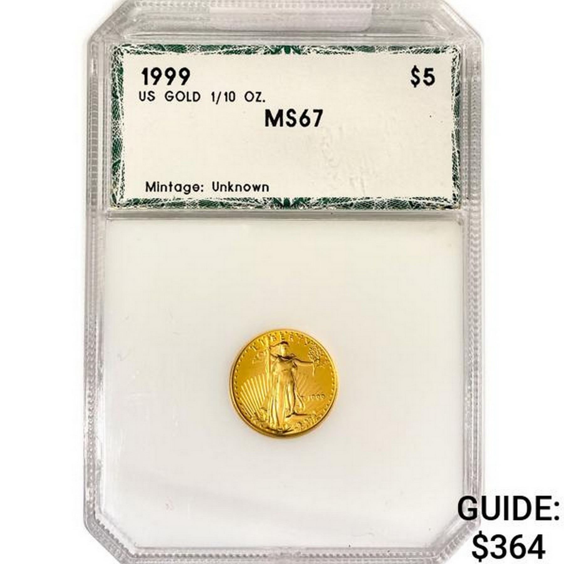 1999 $5 1/10oz American Gold Eagle PCI MS67