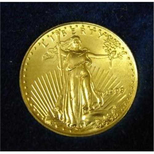 1999 $5 AMERICAN EAGLE GOLD COIN. Has original case and box.