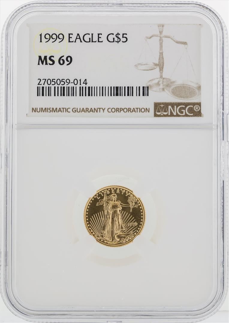 One 1999 $5 American Eagle Gold Coin NGC MS69. NGC Certified.