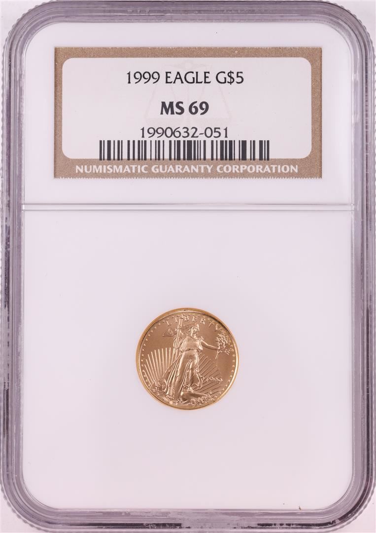 One 1999 $5 American Gold Eagle Coin NGC MS69. NGC Certified.