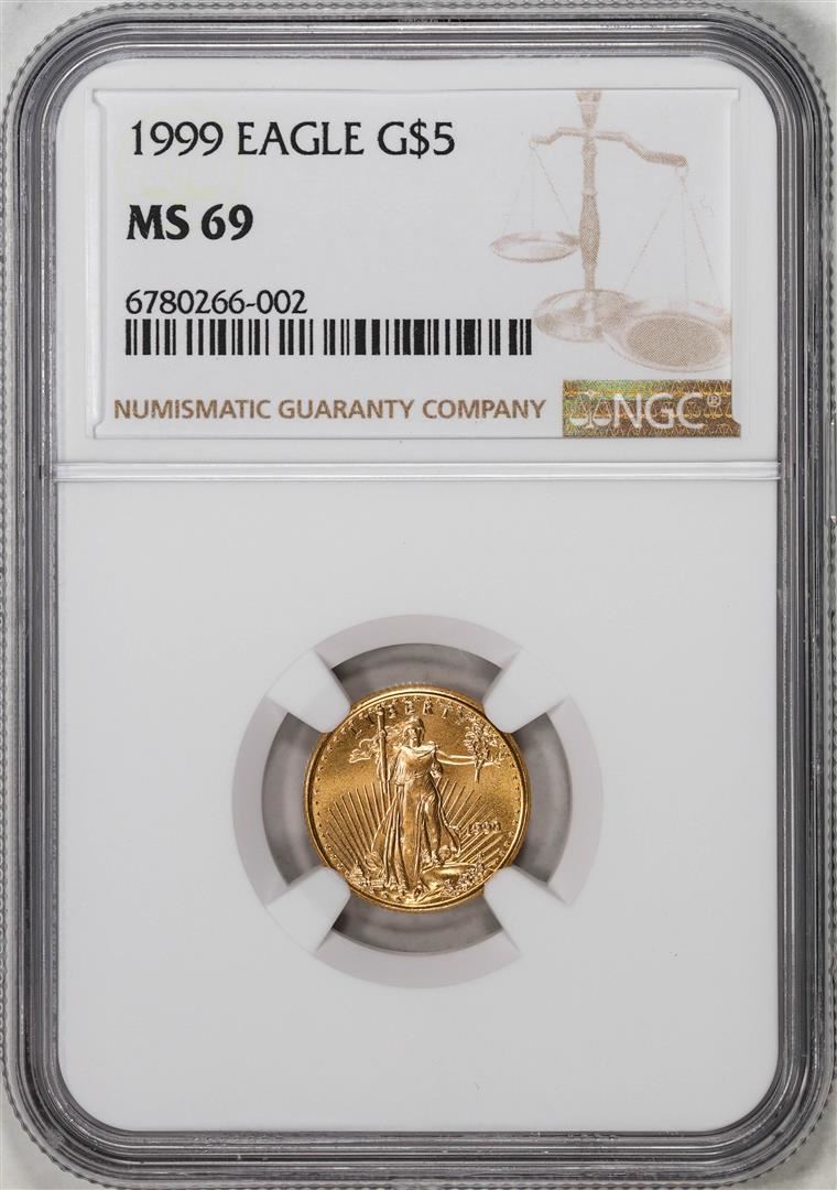 One 1999 $5 American Gold Eagle Coin NGC MS69. NGC Certified.