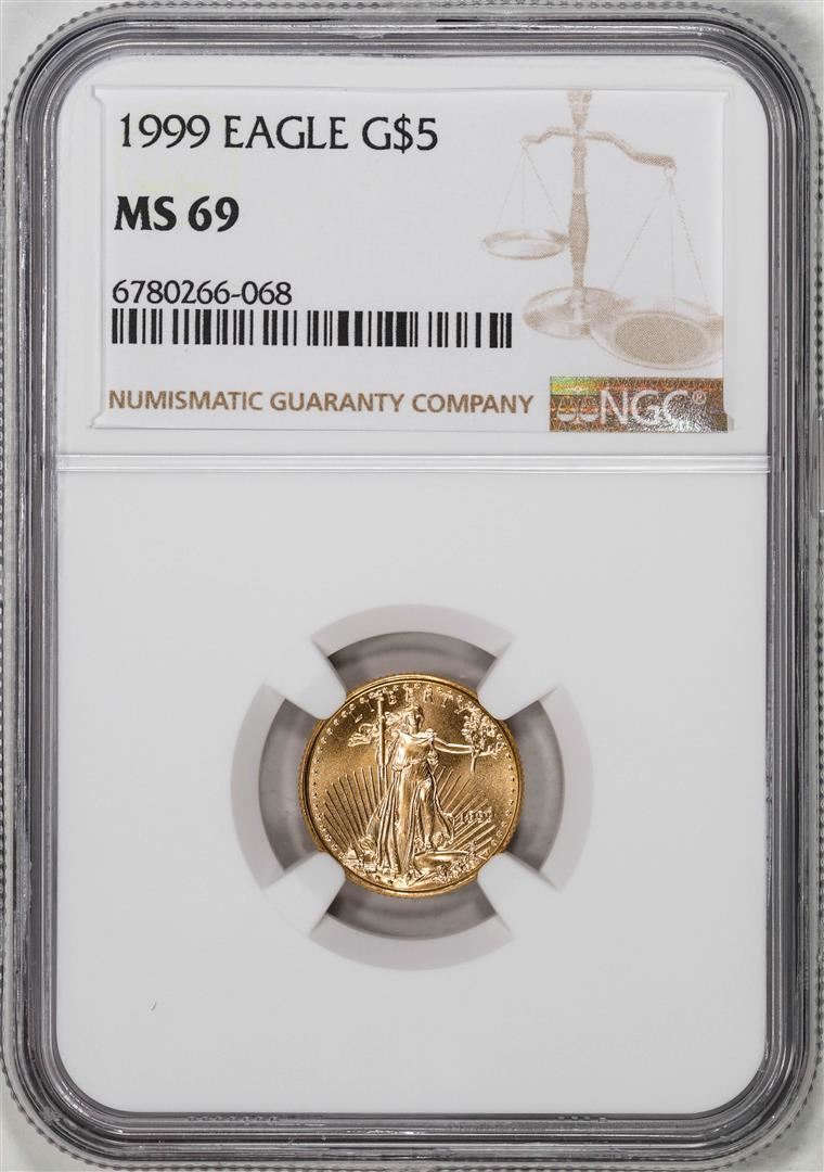 One 1999 $5 American Gold Eagle Coin NGC MS69. NGC Certified.