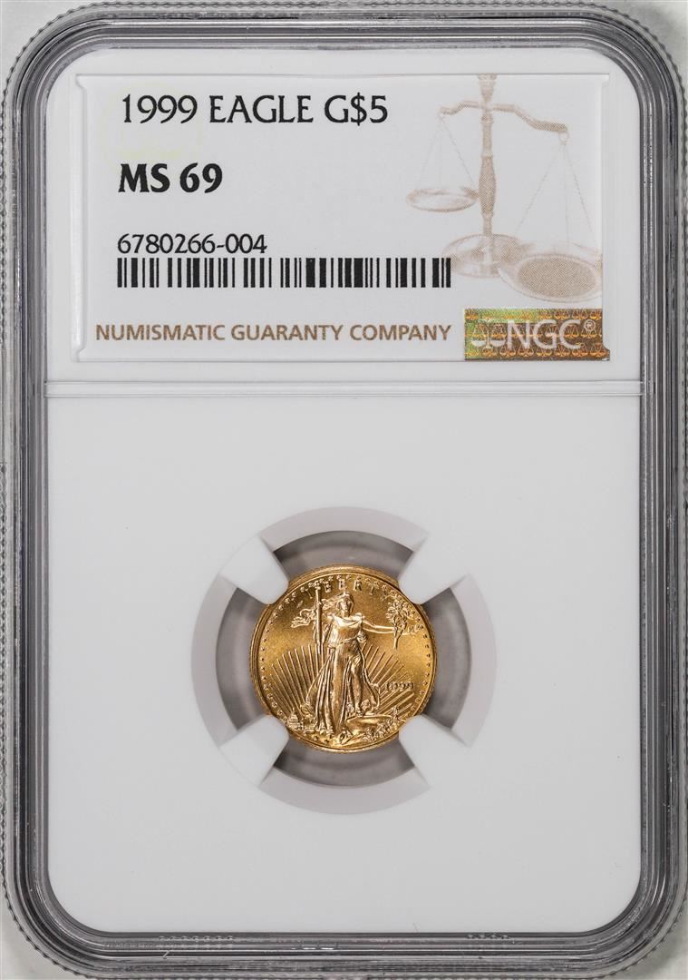 One 1999 $5 American Gold Eagle Coin NGC MS69. NGC Certified.