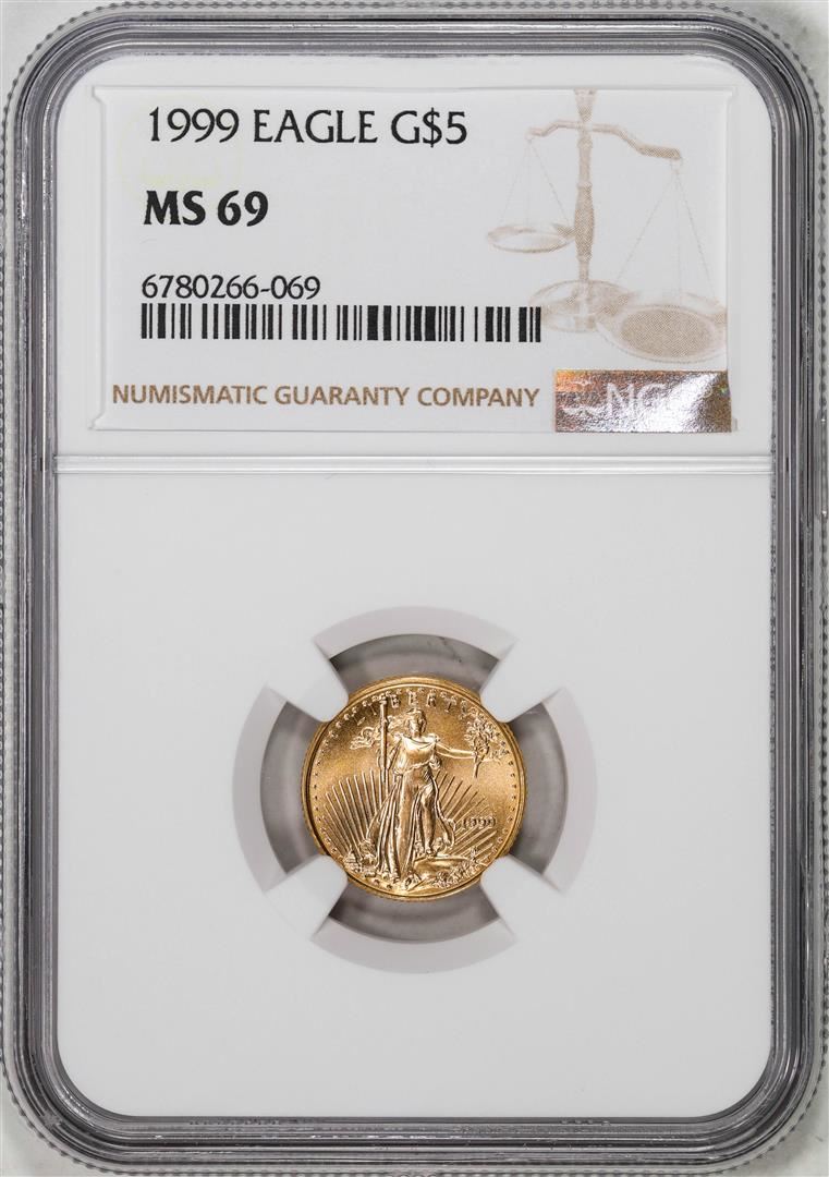 One 1999 $5 American Gold Eagle Coin NGC MS69. NGC Certified.