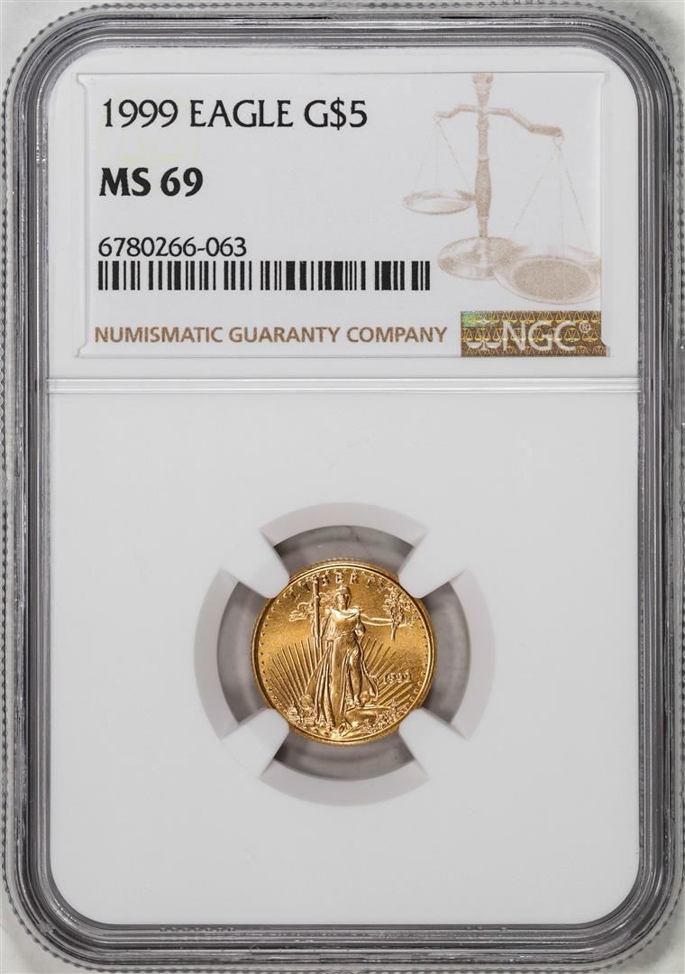 One 1999 $5 American Gold Eagle Coin NGC MS69. NGC Certified.