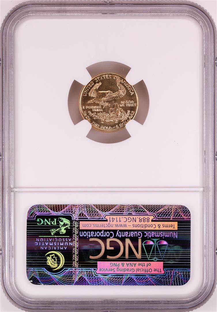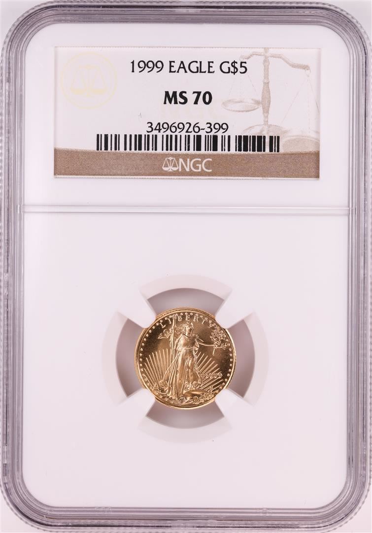 One 1999 $5 American Gold Eagle Coin NGC MS70. NGC Certified.