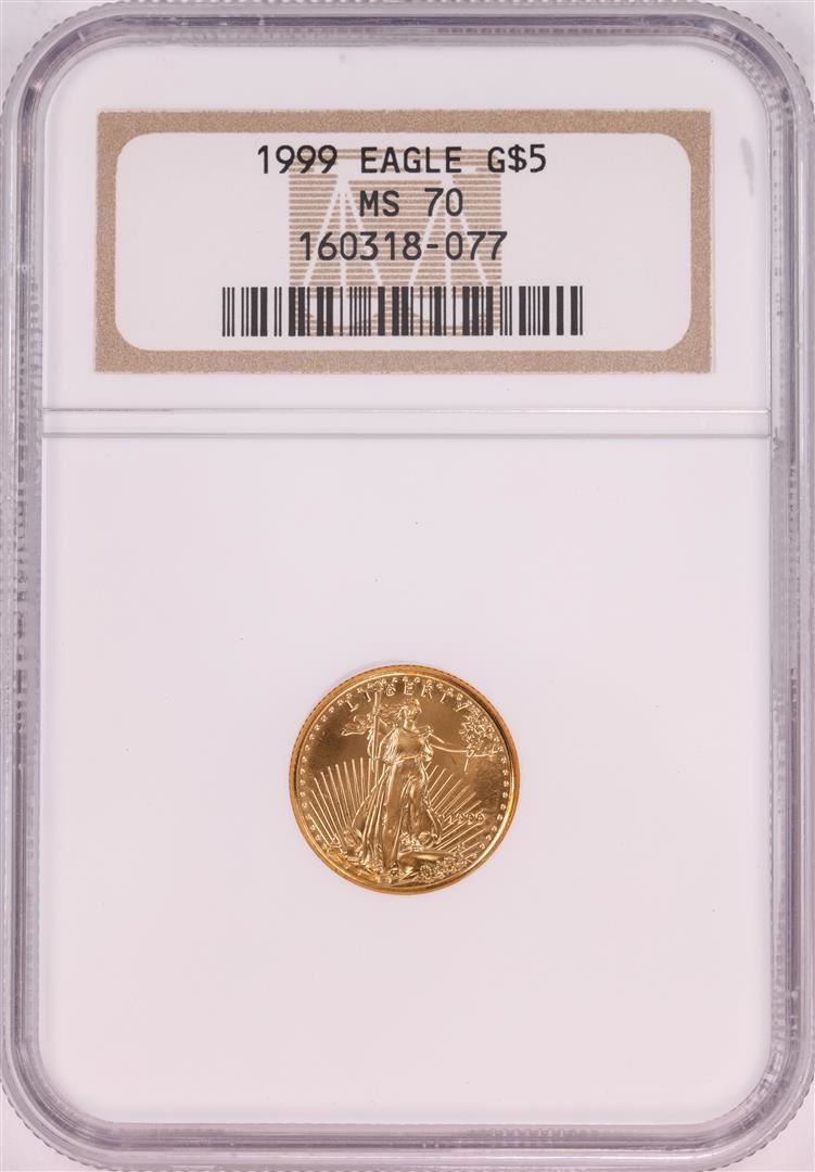 One 1999 $5 American Gold Eagle Coin NGC MS70. NGC Certified.