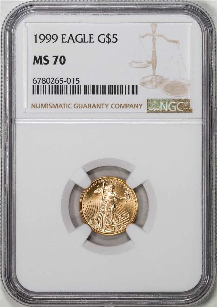 One 1999 $5 American Gold Eagle Coin NGC MS70. NGC Certified.