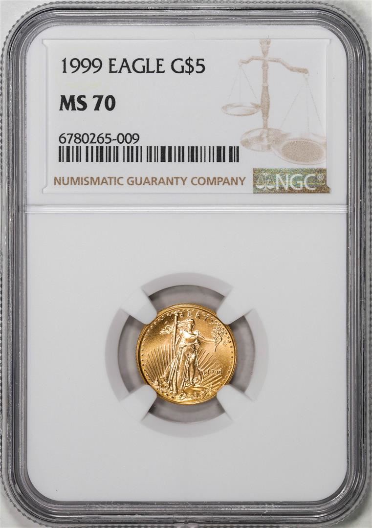 One 1999 $5 American Gold Eagle Coin NGC MS70. NGC Certified.