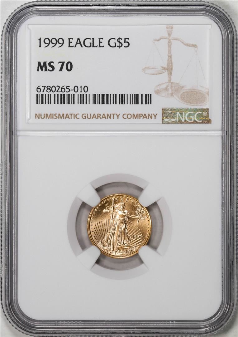 One 1999 $5 American Gold Eagle Coin NGC MS70. NGC Certified.