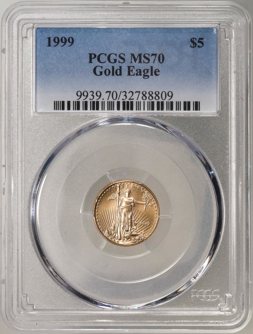 One 1999 $5 American Gold Eagle Coin PCGS MS70. PCGS Graded.