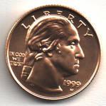 1999 $5 Gold 2 Coin Washington Proof, BU Set