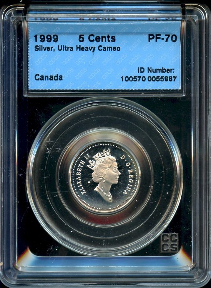 1999 5¢ silver, CCCS PF-70 Ultra Heavy Cameo.