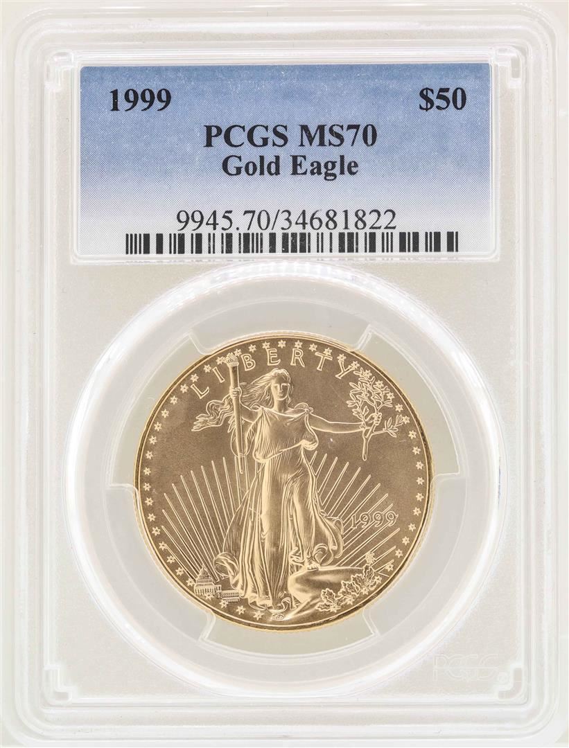 One 1999 $50 American Gold Eagle Coin PCGS MS70. PCGS Graded.