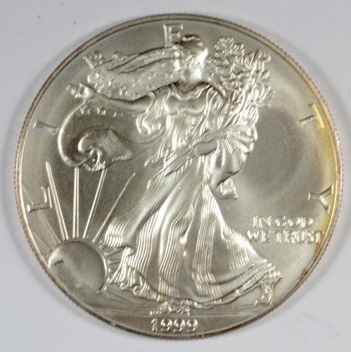 1999 AMERICAN SILVER EAGLE, BU ONE OUNCE .999 SILVER COIN