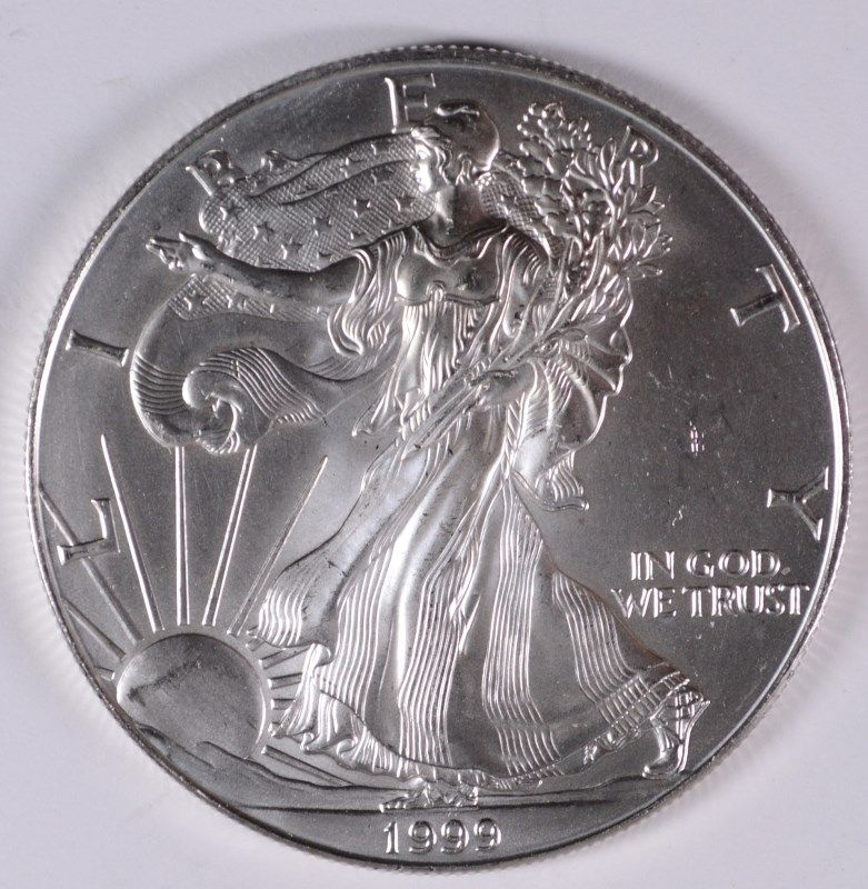 1999 AMERICAN SILVER EAGLE, GEM! CAME OUT OF AN ORIGINAL MINT TUBE KEY DATE!