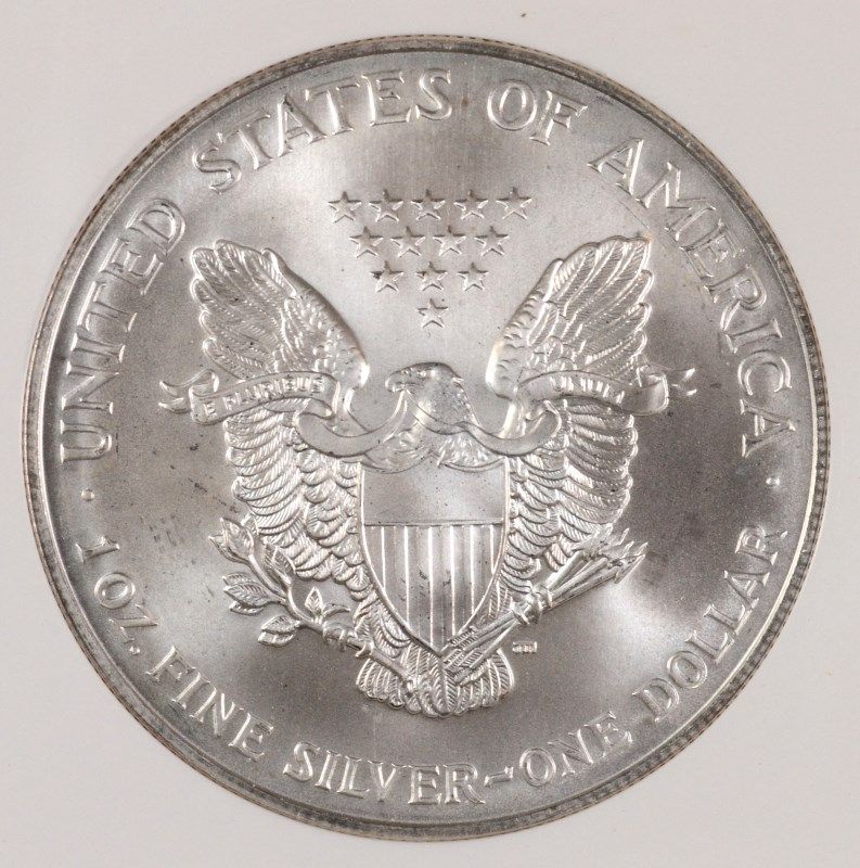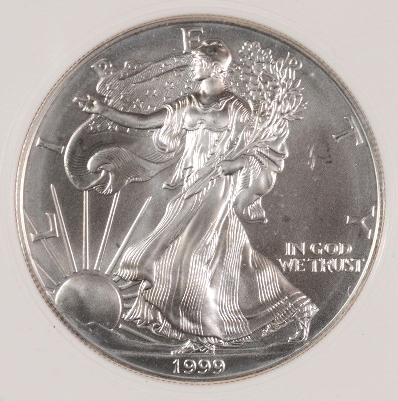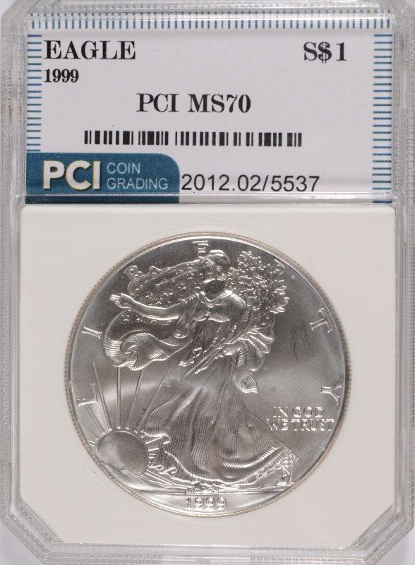 1999 AMERICAN SILVER EAGLE, PCI MS-70 RARE TRENDS PRICE $4000.00