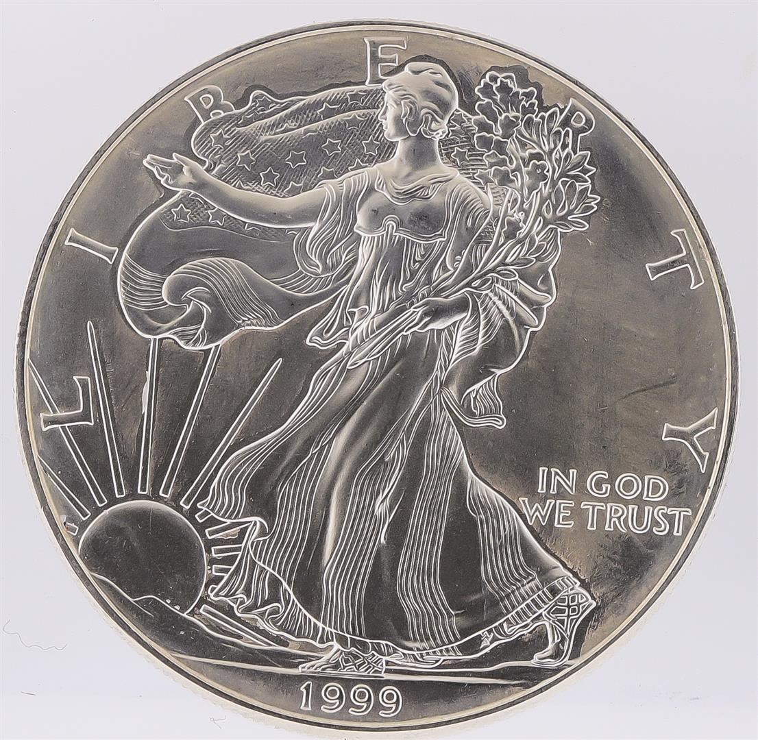 One 1999 American Silver Eagle Dollar Coin.