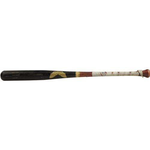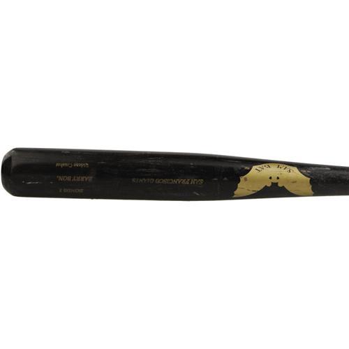<B>1999 Barry Bonds Game Used Bat.</B></I> . The most talked about Major League Baseball player this year is Barry Bonds as he chases Hank Aaron's all time home record of 755. Although the steroid era has put a cloud over some of his accomplishments, a closer look at his entire playing career shows that he is among the all-time greats. His seven-time selection as league Most Valuable player will probably never be equaled. We offer a brown maple bat from the Original Maple Bat Co. The model number is Bonds 1. It is thirty-three and a half inches and thirty-one ounces. The bat shows outstanding use with a handle crack that is also criss-cross taped. Ball and stitch marks are all over the barrel. Also visible are cleat marks, impression from a weighted donut and scoring on the handle. The length, weight, date of manufacture (4 17 99), Bonds initials and model number are on the top of the barrel in black marker. The PSA grade is GU6. <I>LOA from Taube & Malta.</B></I><BR><BR><b>Shipping:</b> Bats, Clubs, Sticks, Swords, Rif (<a target="_blank" href="http://www.heritageauctions.com/common/shipping.php">view shipping information</a>)